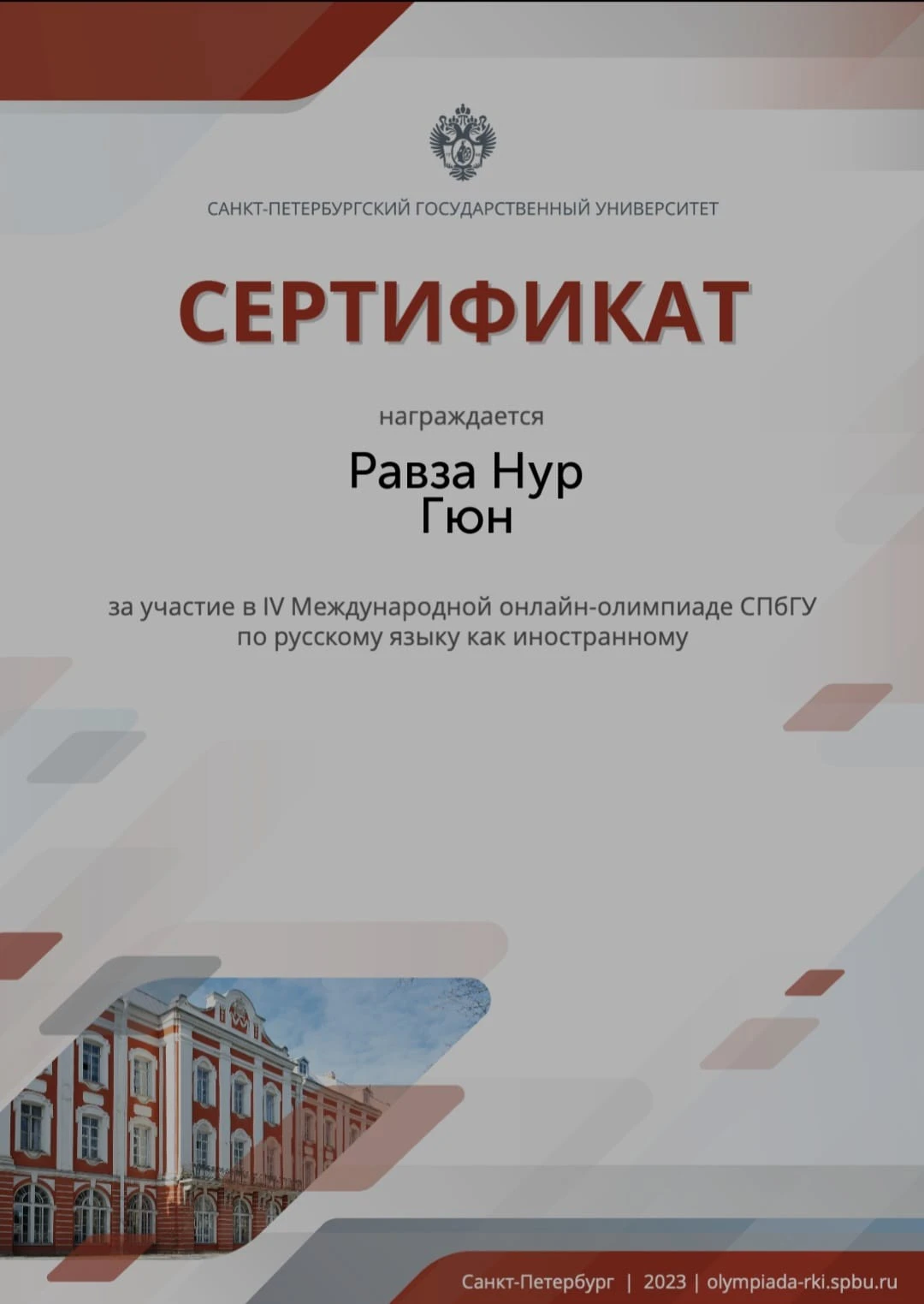Selçuk Üniversitesi Rus Dili ve Edebiyatı öğrencileri Peterburg Devlet Üniversitesi tarafından 1-19 Kasım tarihleri arasında düzenlenen Rusça Olimpiyatları'nda büyük bir başarı yakaladı. Yüz kırk dört ülkeden toplam sekiz bin yedi yüz yetmiş bir kişinin katıldığı ve finalinde yüz on sekiz ülkeden dört bin iki yüz kişinin yarıştığı olimpiyatta bölümümüz öğrencilerinden Özgenur Fidan birinci olurken üçüncü sınıf öğrencilerimizden Ravza Nur Gün, Dilan Kirazoğlu Begüm Akgül ve Zeynep Kul finale kalmıştır. Öğrencilerimizi tebrik eder, başarılarının devamını dileriz.