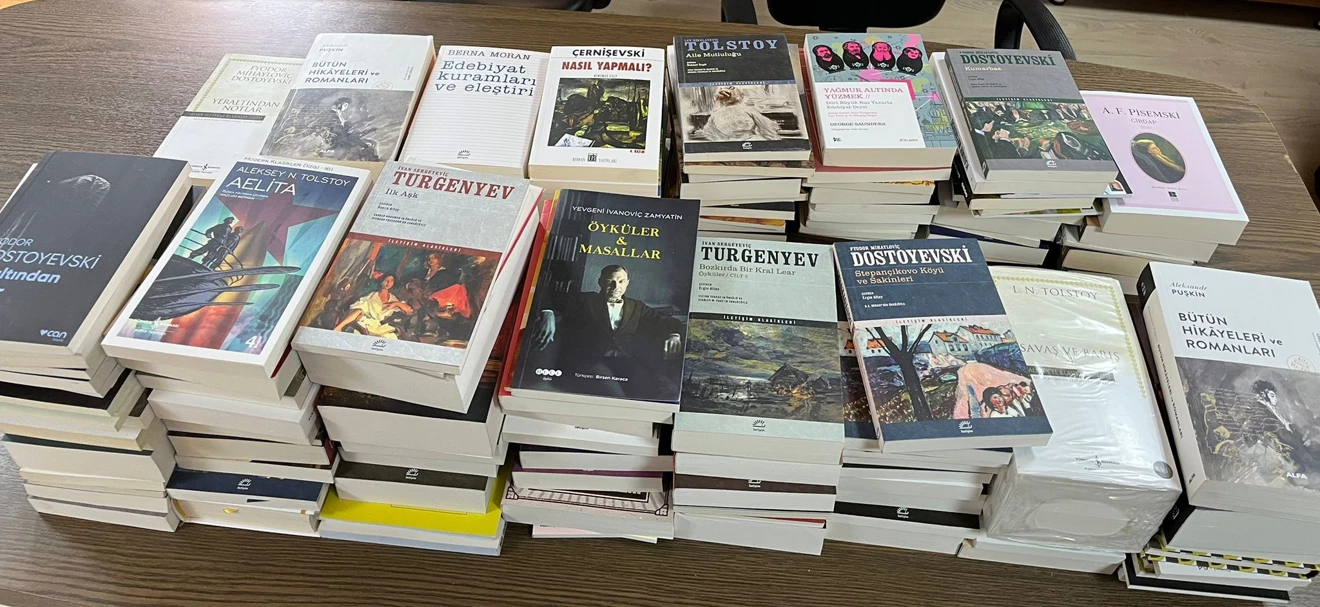 Selçuk Üniversitesi Rus Dili ve Edebiyatı bölüm kütüphanesine yaptıkları kitap bağışı için Sayın Asuman Öz'e ve LİBER Kitap, Kültür ve Sanat Derneği Edebiyat Komitesi Temsilcisi Sayın Saime Yardımcı'ya içtenlikle teşekkürlerimizi sunarız.