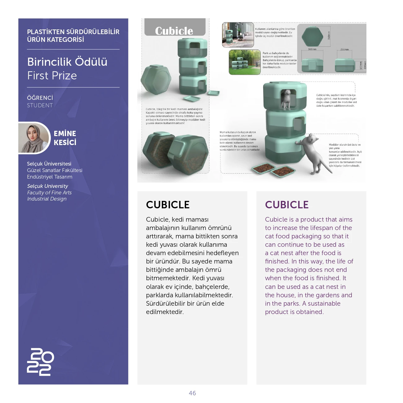 Plastikten Sürdürülebilir ürün kategorisinde 1. lik ödülünü Emine Kesici, 2.lik ödülünü Hatice Esra Sungur, mansiyon ödülünü ise Büşra Şeyben aldı.