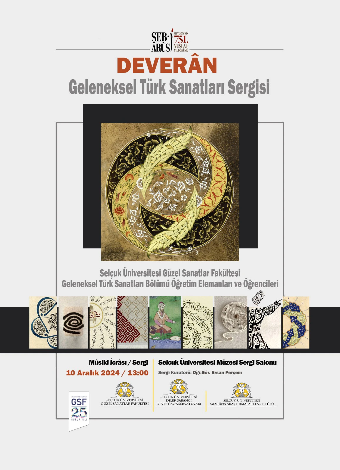 Mevlana'yı Anma ve 751. Vuslat Yıldönümü etkinlikleri çerçevesinde açılacak olan "DEVERAN" isimli bölüm öğretim elemanları ve öğrencileri karma sergisine herkesi bekleriz.