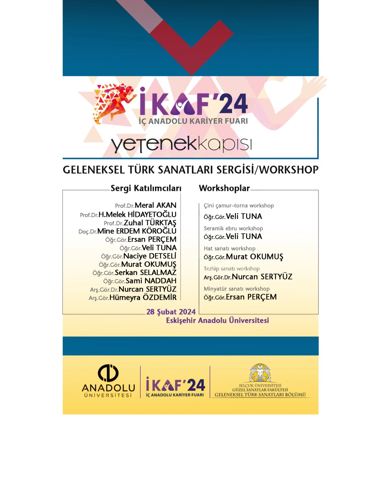 Duyurular KARİYER FUARI 26 Şubat 2024 Geleneksel Türk Sanatları Bölümümüzün katıldığı İÇ ANADOLU KARİYER FUARI duyurusu ektedir. Medya Paylaş: