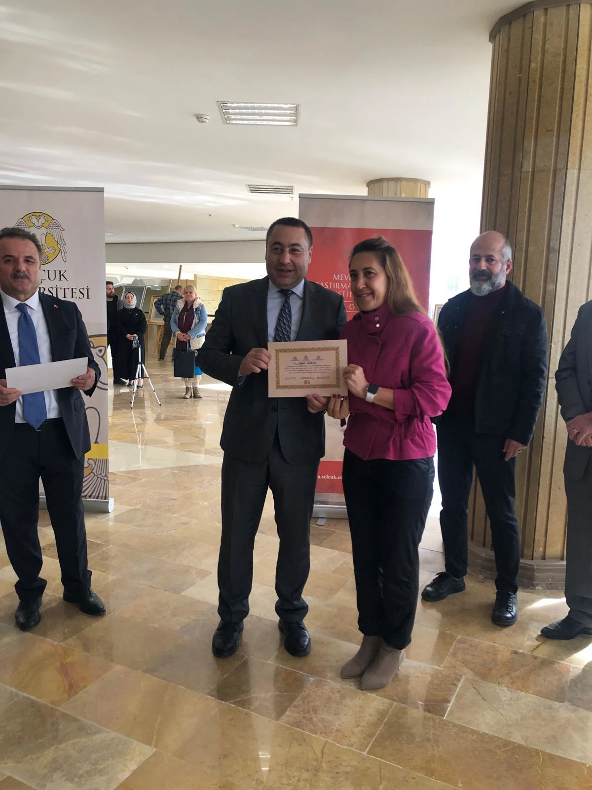Mevlâna'nın 751. Vuslat Yıldönümü Etkinlikleri çerçevesinde Selçuk Üniversitesi Mevlâna Araştırmaları Enstitüsü organizasyonu ile bölümümüz öğrenci ve öğretim elemanlarının eserlerinden oluşan "DEVERÂN" Geleneksel Türk Sanatları Sergisi açıldı. Üniversitemiz Müze Sergi Salonu 2. katta açılan serginin açılışını Üniversitemiz Rektör Yardımcısı Sayın Prof. Dr. Haldun SOYDAL yaparken, açılış töreninde Fakültemiz Dekanı Prof. Dr. Ali Atıf POLAT, Mevlâna Araştırmaları Enstitüsü Müdürü Prof. Dr. Nuri ŞİMŞEKLER konuşma yaptılar. Programda sergi açılışı ile birlikte SÜ Dilek Sabancı Devlet Konservatuvarı tarafından icra edilen Türk Musikîsi dinletisi de yer aldı. Akademisyen, öğrenci ve sanatseverlerin büyük ilgisi ile açılan sergi 17 Aralık 2024 tarihine kadar görülebilecek.
