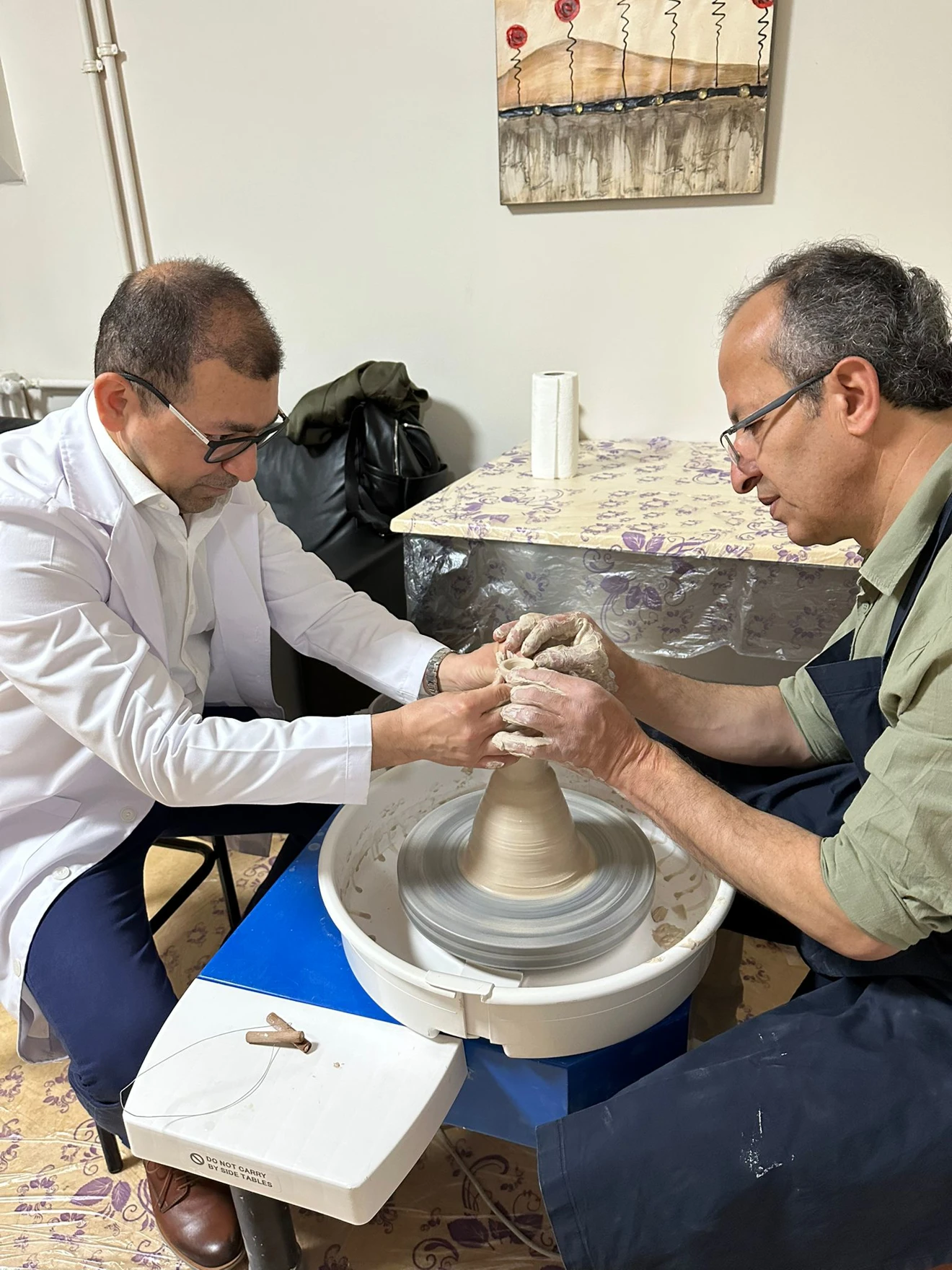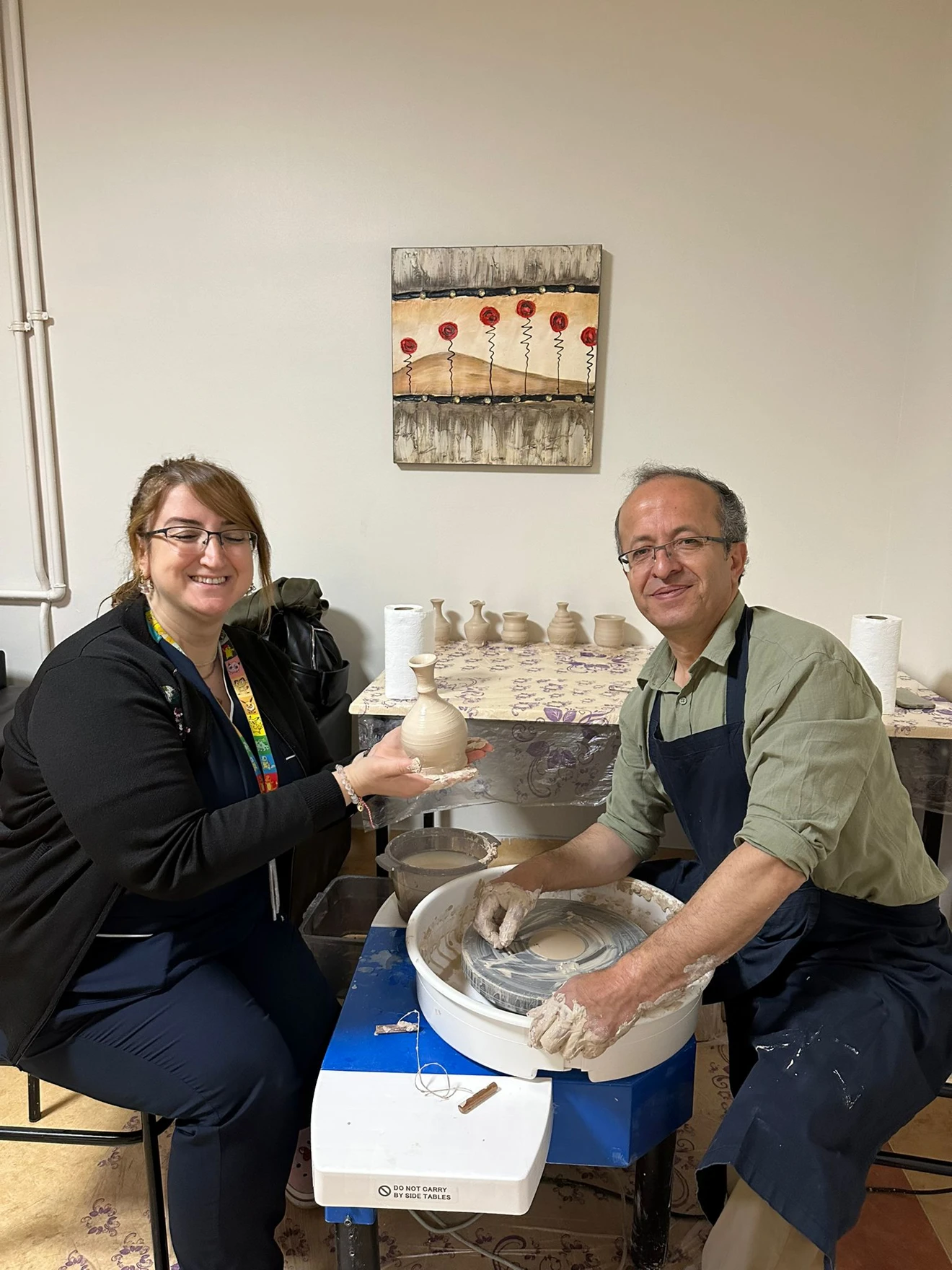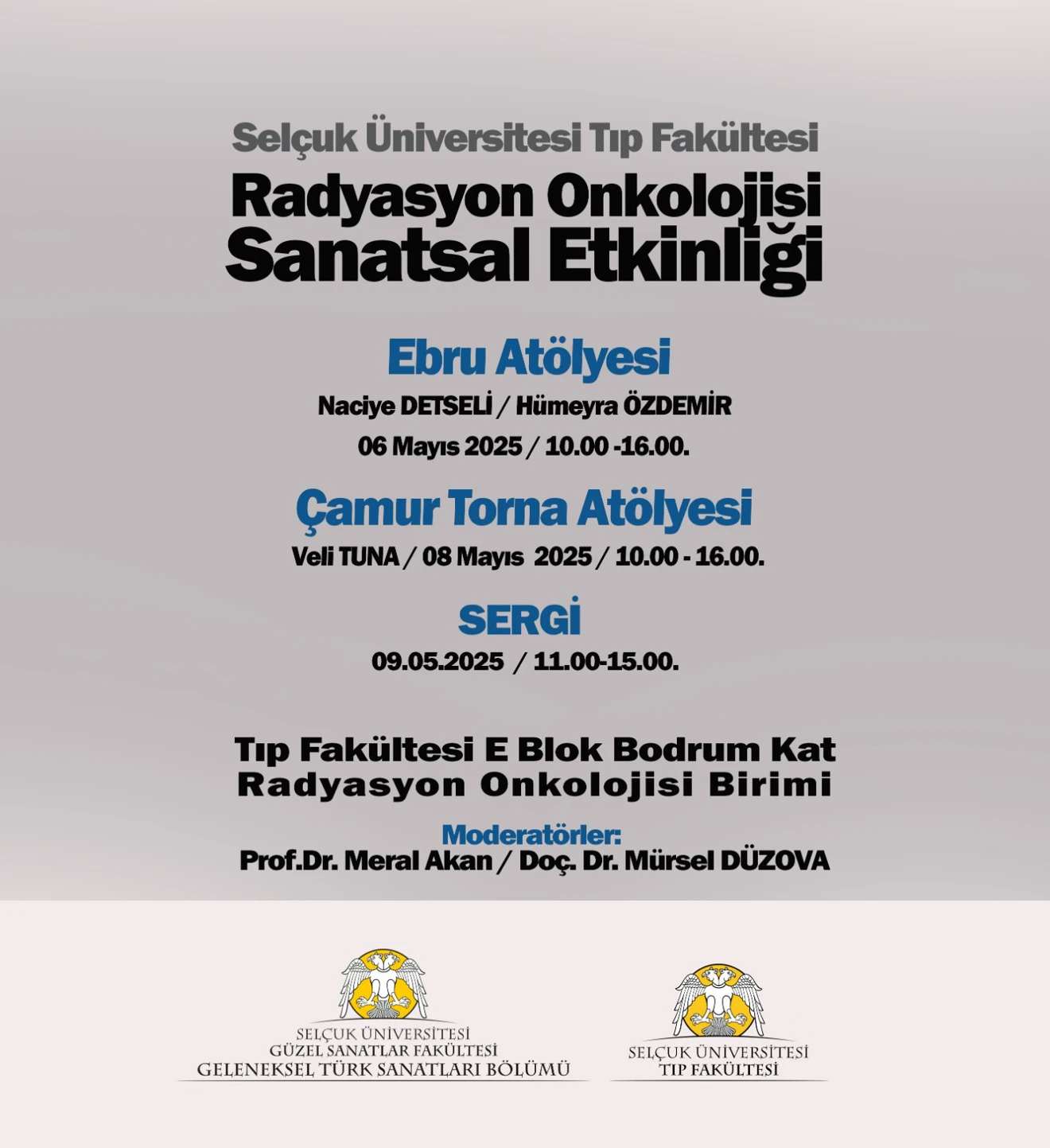 Tıp Fakültesi Radyasyon Onkolojisi Bölümü ile karşılıklı yapılan organizasyon sonucu 6-8-9 Mayıs günlerinde ilgili anabilim dalında hasta ve hekimlere yönelik bir sanatsal etkinlik gerçekleştirildi. Moderatörlüğünü Tıp Fakültesi’nden Doç Dr. Mürsel DÜZOVA ve bölümümüzden Prof. Dr. Meral AKAN’ın yaptığı, Topluma Dayalı Tıp dersi öğrencilerinin de eşlik ettiği etkinlikler ilgi ile karşılandı. Bölümümüzden Öğr. Gör. Dr. Naciye DETSELİ, Arş. Gör. Hümeyra ÖZDEMİR ve Öğr. Gör. Veli TUNA’nın görev aldığı etkinliklerde Ebru Sanatı, Çamur Torna ve Seramik Ebru Atölyeleri gerçekleştirildi. Toplum yararına yapılan uygulamalara güzel bir örnek olan bu etkinliğin ileri tarihlerde tekrarlanması planlandı.