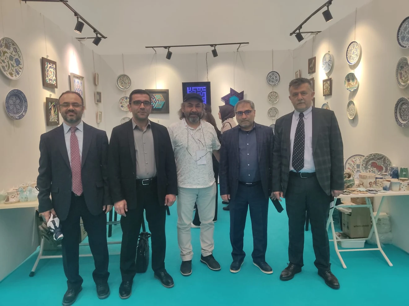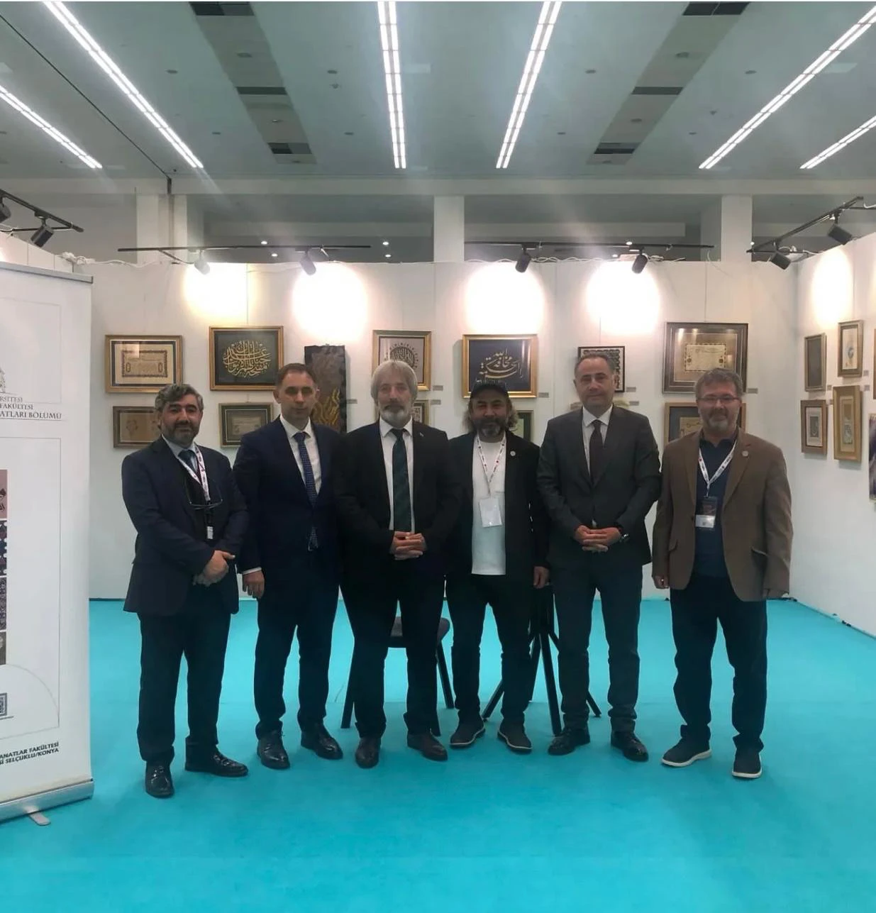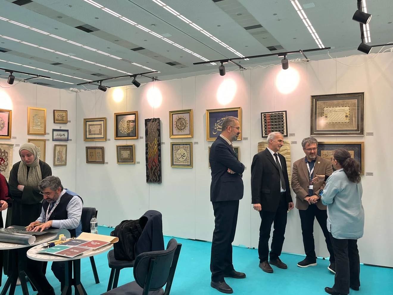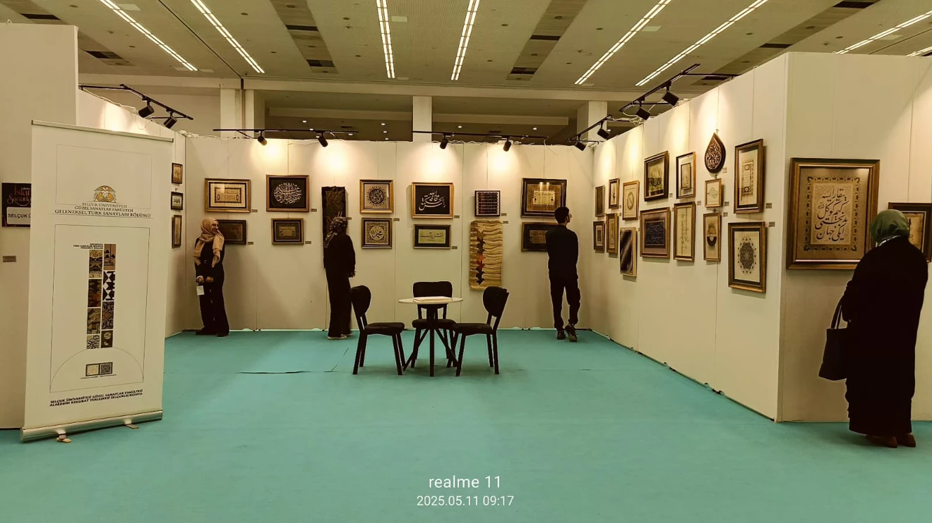 Diyanet İşleri Başkanlığı organizasyonu ile 7-11 Mayıs 2025 tarihleri arasında 5 gün süre ile Ankara Congresium’da düzenlenen Uluslararası İslam Sanatları Fuarında, Geleneksel Türk Sanatları Bölümü olarak Fakültemizi temsil ettik. Fuarda bölüm öğretim elemanları ve öğrencilerinin, Hüsn-i Hat, Tezhip, Ebru, Halı-Kilim, Kalemişi, Çini ve Minyatür sanatına dair eserleri sergilenerek tanıtım yapıldı. Eserler sanatseverlerin ilgisi ile karşılandı. Bölümümüz Öğr. Gör. Murat OKUMUŞ’un Hüsn-i Hat Sanatı eseri ise Diyanet İşleri Başkanı tarafından Emine ERDOĞAN’a armağan edildi. Geleneksel Türk Sanatları konularında söz sahibi hocaları da bir araya getiren etkinlikte söyleşiler, konferanslar, sergiler yer aldı.
