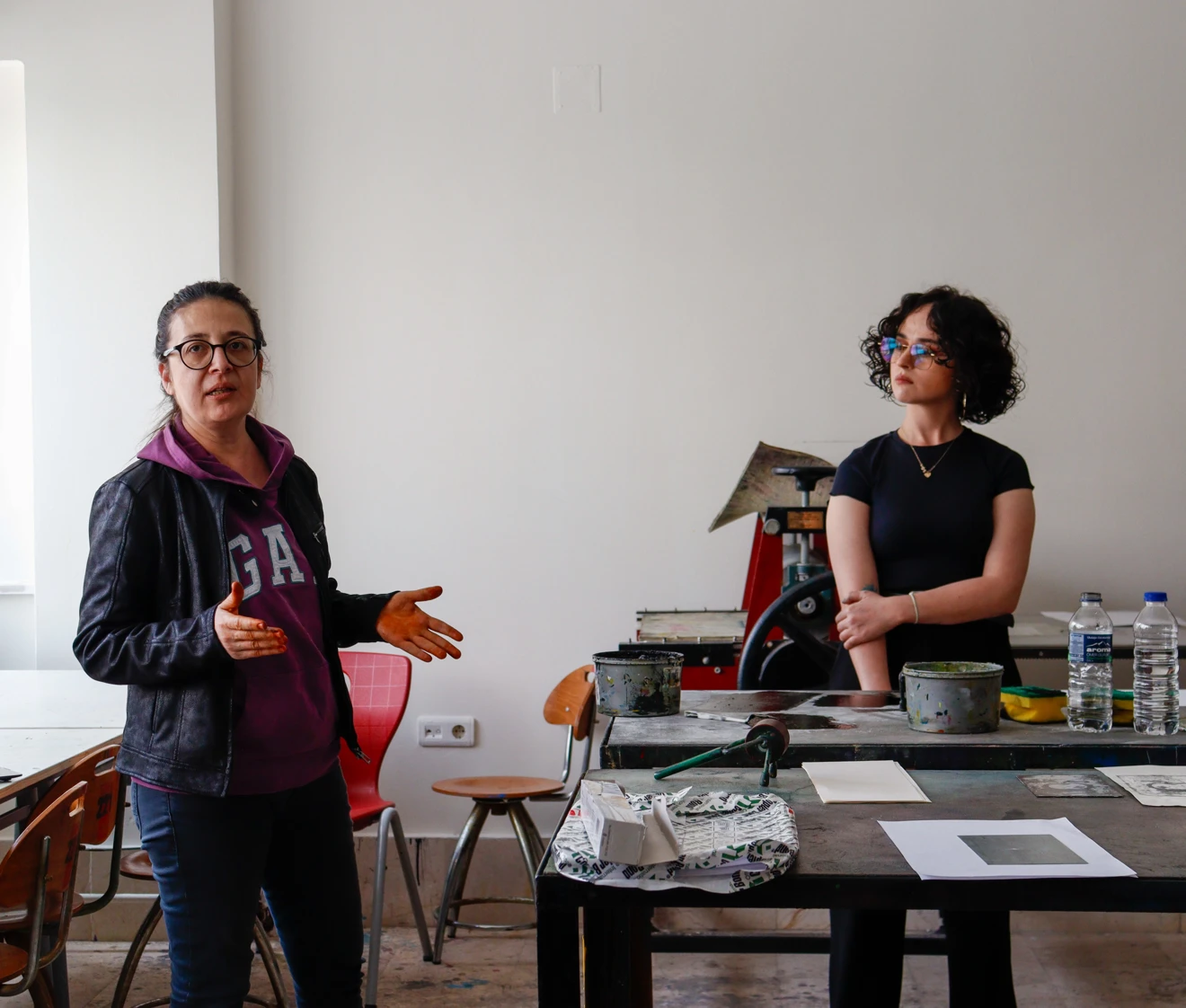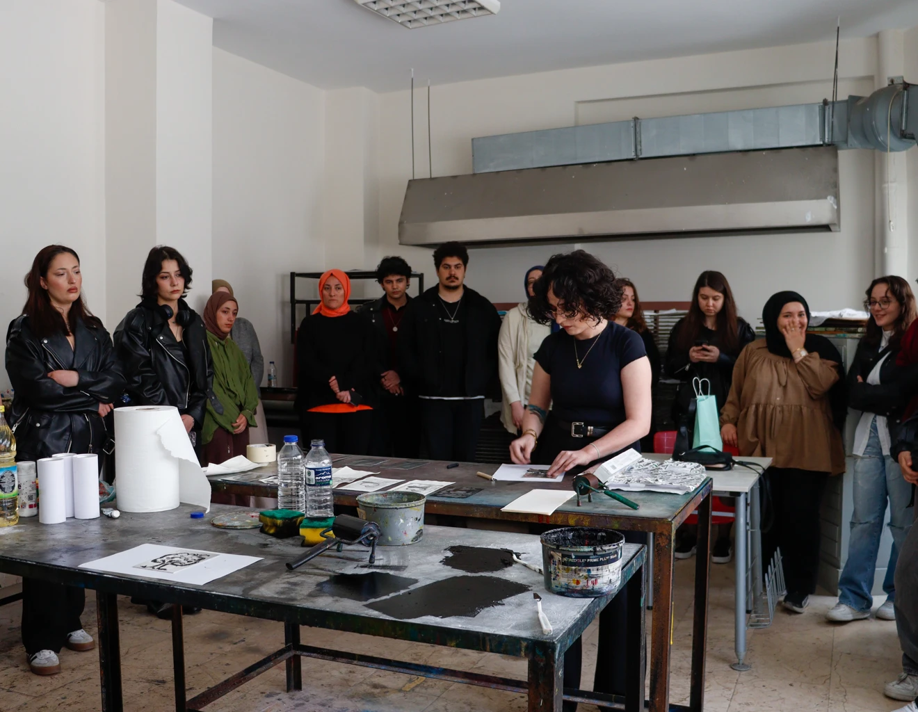 "Kitchen Lithography" başlığı altında düzenlenen etkinlikte Sevgi Sancar, mutfakta bulunan basit malzemelerle litografi baskı tekniğinin nasıl uygulanabileceğini öğrencilere uygulamalı olarak anlattı. Workshop sonrasında katılımcılar, Sevgi Sancar’ın gösterimiyle öğrendikleri teknikleri kullanarak, mevcut malzemelerle kendi baskı çalışmalarını gerçekleştirdiler.