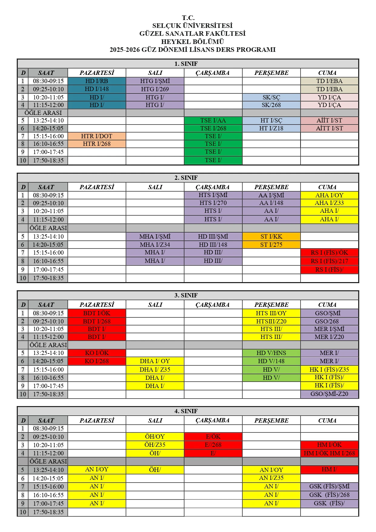 2025-2026 HEYKEL BÖLÜMÜ GÜZ DÖNEMİ DERS PROGRAMI