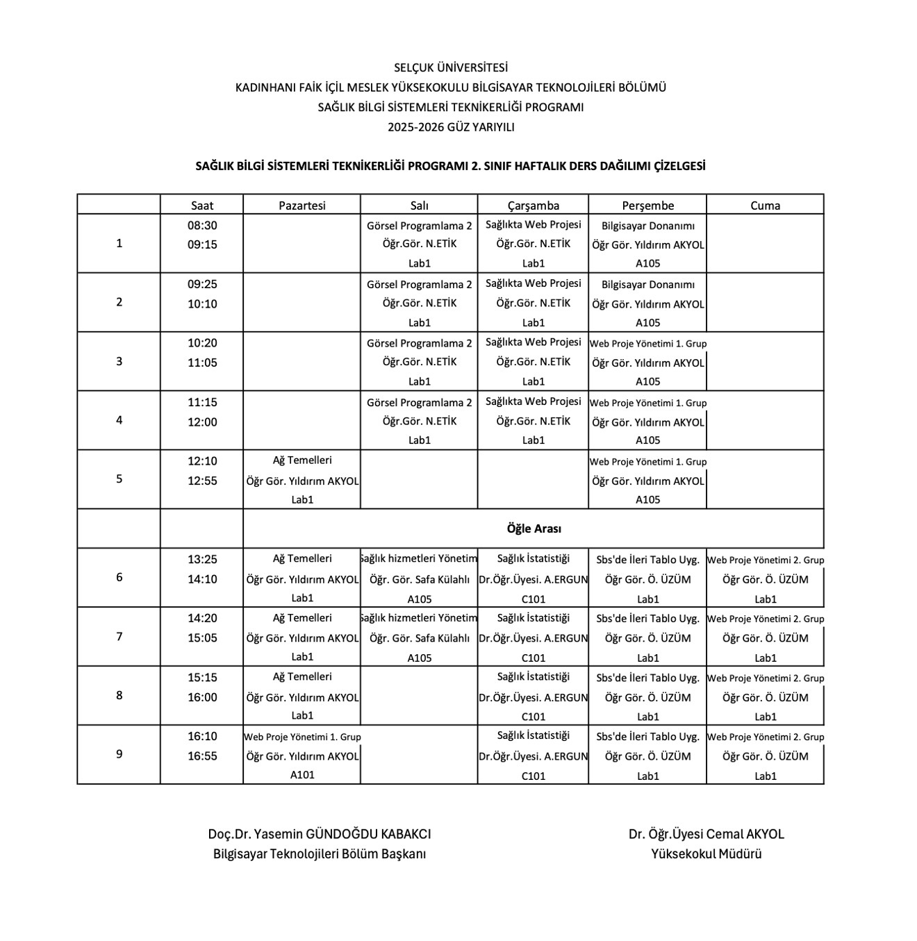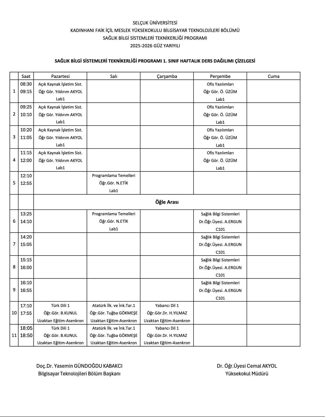 Haftalık Ders Programı