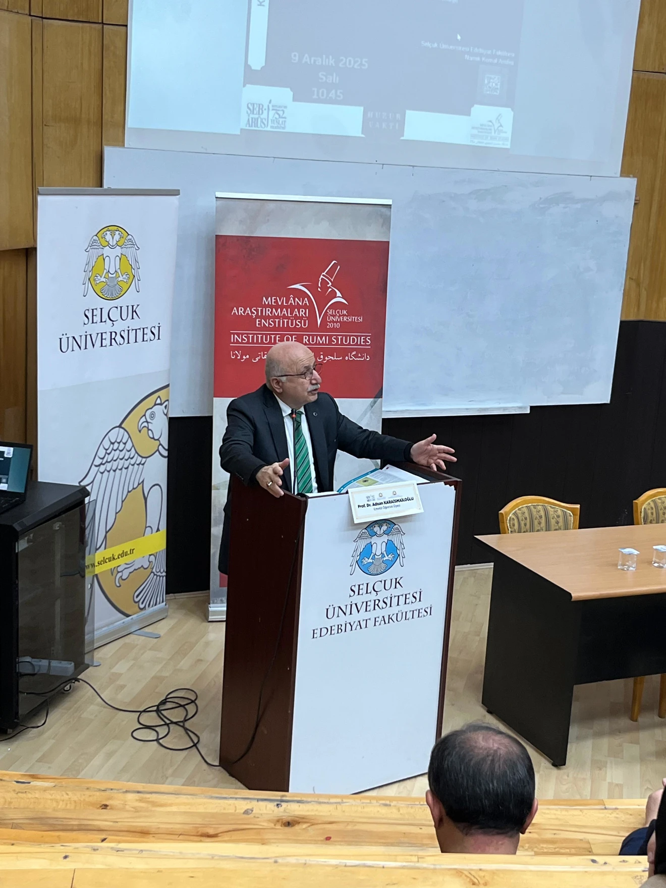 Selçuk Üniversitesi Mevlana Araştırmaları Enstitüsü ve Edebiyat Fakültesi tarafından Hz. Mevlâna'nın 752. Vuslat Yıl Dönümü Uluslararası Anma Törenleri kapsamında “Kültür ve Edebiyatımızda Mevlana” adlı konferans düzenlendi.