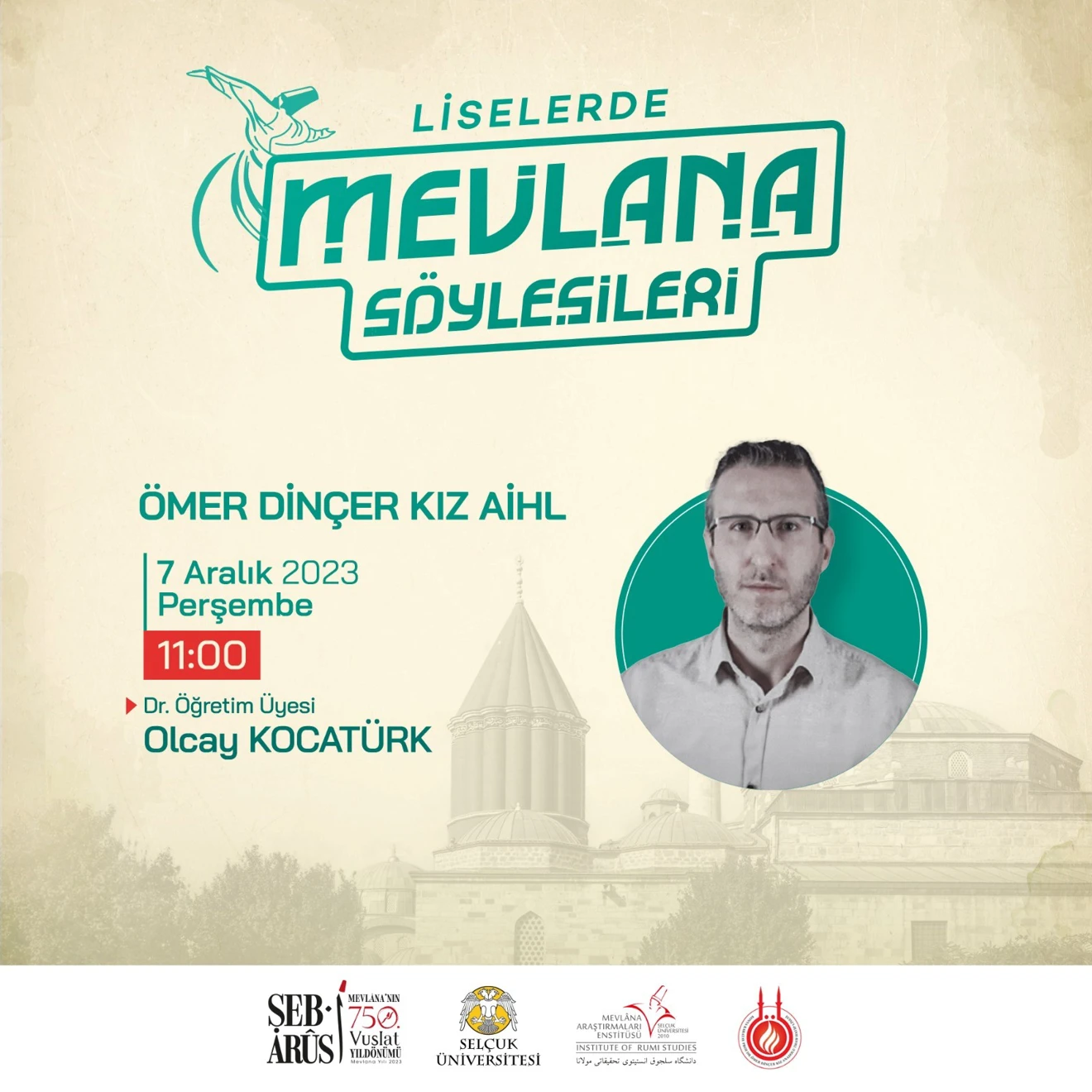 Selçuk Üniversitesi Mevlana Araştırmaları Enstitüsü tarafından Hz. Mevlana’nın 750. Vuslat Yıl Dönümü Etkinlikleri kapsamında “Mevlana Söyleşileri” gerçekleştirilecektir. Program kapsamında Dr. Öğr. Üyesi Olcay Kocatürk 07.12.2023 tarihinde saat 11.00’da Prof. Dr. Ömer Dinçer Kız Anadolu İmam Hatip Lisesi’nde öğrencilerle buluşacaktır.