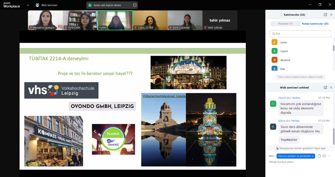 24.04.2025 tarihinde Küresel Akademik Fırsatlar: Lisansüstü Eğitimde Yurt Dışı Deneyimleri isimli etkinliğimiz zoom üzerinden başarıyla tamamlanmıştır. Etkinliğe Doktora Öğrenci Temsilcimiz Emsalnur AÇIKGÖZ ve Yüksek Lisans öğrenci temsilcimiz Esra ÇOBANLAR ile beraber yurt dışı deneyimlerini paylaşmak üzere mezun öğrencilerimiz katkıda bulunmuştur.