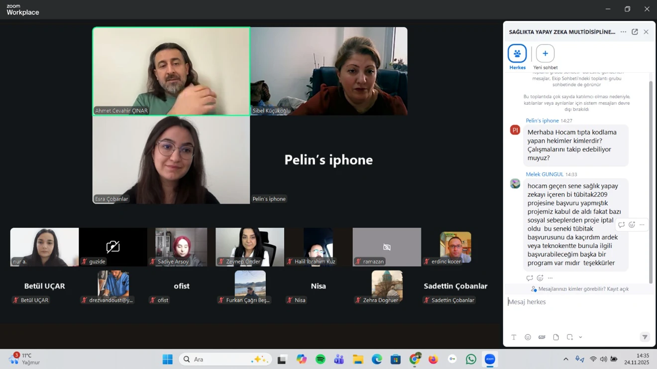 Selçuk Üniversitesi Sağlık Bilimleri Enstitüsü, öğrencilerini ve akademik camiayı bilimsel gelişmelerle buluşturmaya devam ediyor. Bu kapsamda, 24 Kasım Pazartesi günü saat 14.00'te Zoom platformu üzerinden, günümüzün önemli konularından biri olan "Sağlıkta Yapay Zekâ Multidisipliner Çalışma Fırsatları" başlıklı konuşma gerçekleştirildi.