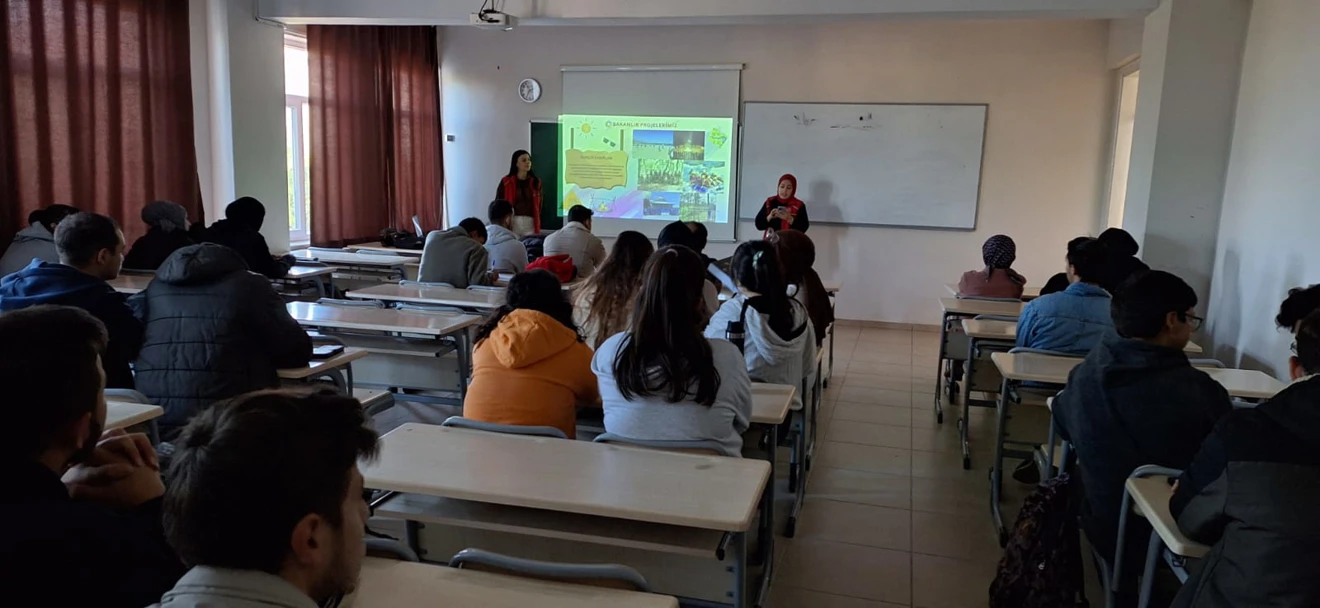 Akşehir Gençlik ve Spor İlçe Müdürü Eyüp YILMAZ ve beraberindeki heyet Akşehir Mühendislik ve Mimarlık Fakültesi öğrencilerine, Akşehir Gençlik Merkezi ve faaliyetlerine yönelik bilgilendirme sunumu gerçekleştirdiler. Programda, öğrencilerimizin okul dersleri haricindeki boş zamanlarını değerlendirmelerine ilişkin müdürlük tarafından sunulan ve yürütülmekte olan hizmetler, spor faaliyetleri, düzenlenen bilgi ve beceri kurslarının tanıtımları yapılmıştır.