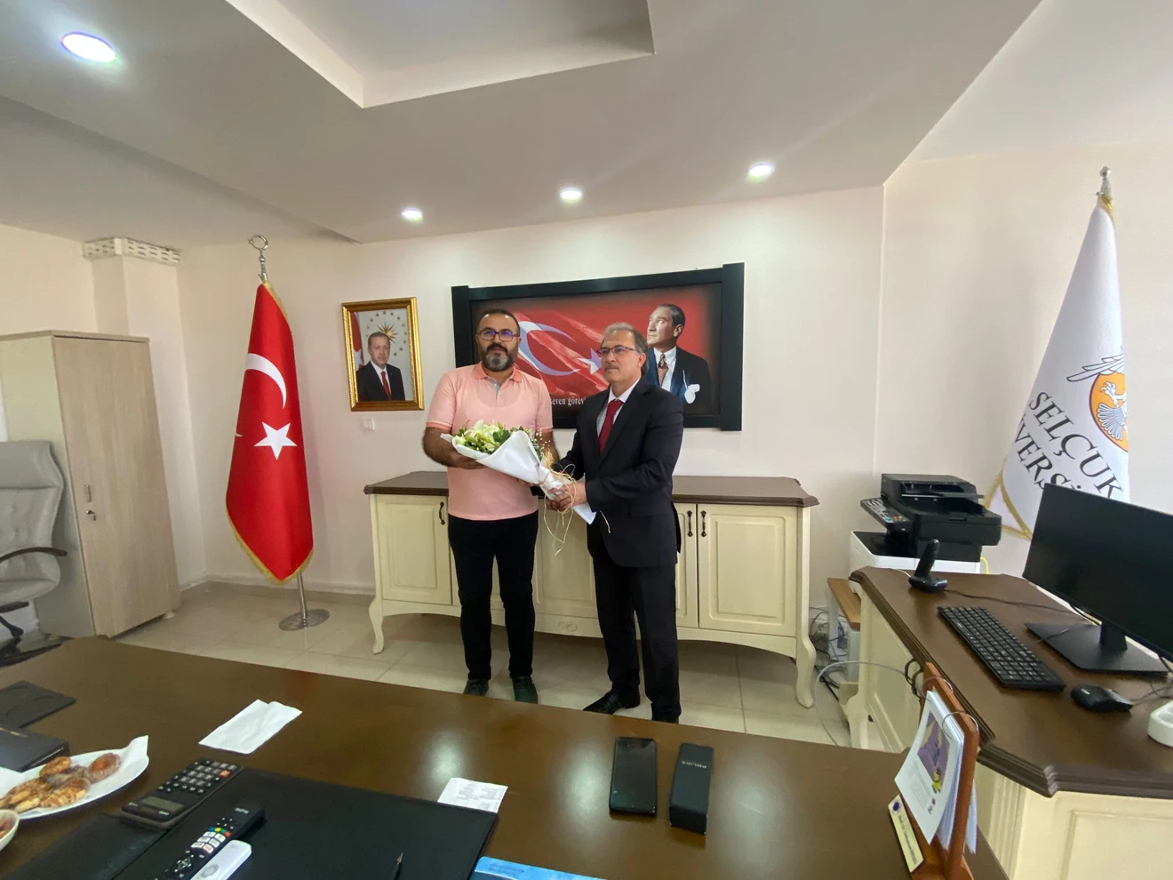 Dekanlık makamında gerçekleşen devir-teslim töreninde bulunan, Akşehir Meslek Yüksekokul Müdürü Dr. Öğr. Üyesi Mehmet ŞAHİN, Müdür Yardımcısı Öğr. Gör. Soykan UYSAL, Yüksekokul Sekreteri Habip ÖZDEMİR, Akşehir İktisadi ve İdari Bilimler Fakültesi Sekreteri Muhammet ALTUNYALDIZ ve Akşehir Mühendislik ve Mimarlık Fakültesi akademik ve idari personelleri Dekan Prof. Dr. Cemalettin SARIÇOBAN’a yeni görevinde başarı dileklerinde bulundular.