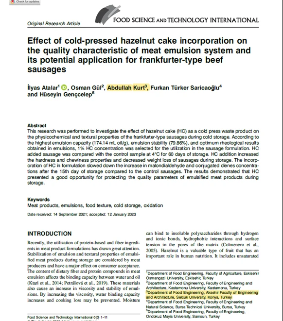 Akşehir Mühendislik ve Mimarlık Fakültesi Dekanı Prof. Dr. Süleyman NEŞELİ, Gıda Mühendisliği Bölümü akademik personelleri Bölüm Başkanı Doç. Dr. Abdullah KURT ve Dekan Yardımcısı Dr. Öğr. Üyesi Mustafa Şamil ARGUN’a Selçuk Üniversitesi bünyesindeki Fakültemizin ve Akşehir’in tanınırlığına, nitelikli akademik yayınlar ile destek sağladıkları için teşekkürlerini ileterek başarılarının devamını diledi.