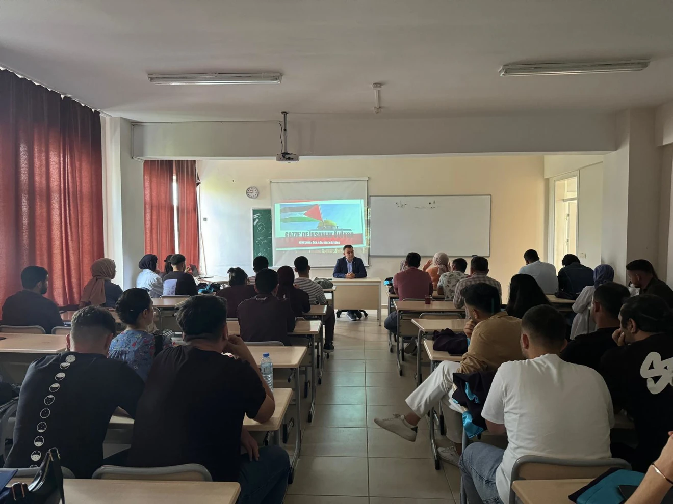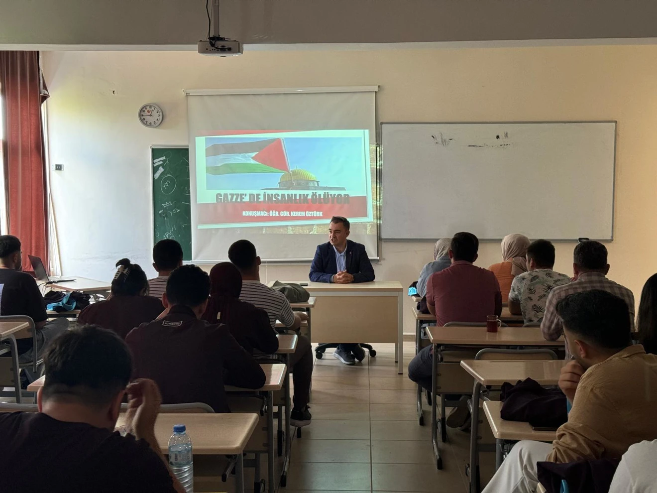 Akşehir Mühendislik ve Mimarlık Fakültesinde gerçekleşen programda “Gazze’de İnsanlık Ölüyor” başlıklı sunum Öğr. Gör. Kerem ÖZTÜRK tarafından yapıldı. Öğrencilerin yoğun katılım gösterdiği programda, Gazze’de yaşanan soykırımın geniş perspektifte daha iyi anlaşılması adına ülkemizi ve bölgeyi ilgilendiren tarihsel süreçler ele alındı. Sunumu için Öğr. Gör. Kerem ÖZTÜRK’e, Dekan Yardımcısı Dr. Öğr. Üyesi Mustafa Şamil ARGUN tarafından program anısına teşekkür belgesi takdimi yapıldı.