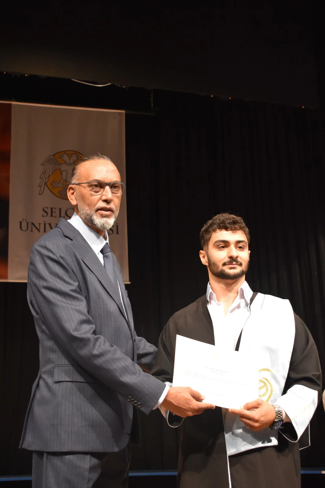 Programda konuşmasına devam eden Selçuk Üniversitesi Dekanı Prof. Dr. Murat ERDOĞDU, öğrencilerin yetişmesinde katkı sağlayan ailelerine, akademisyenlere ve üniversite çalışanlarına teşekkür ederek; öğrencilerin eğitim hayatlarında ve sonraki süreçte daima yanlarında olduklarını ifade etti.
