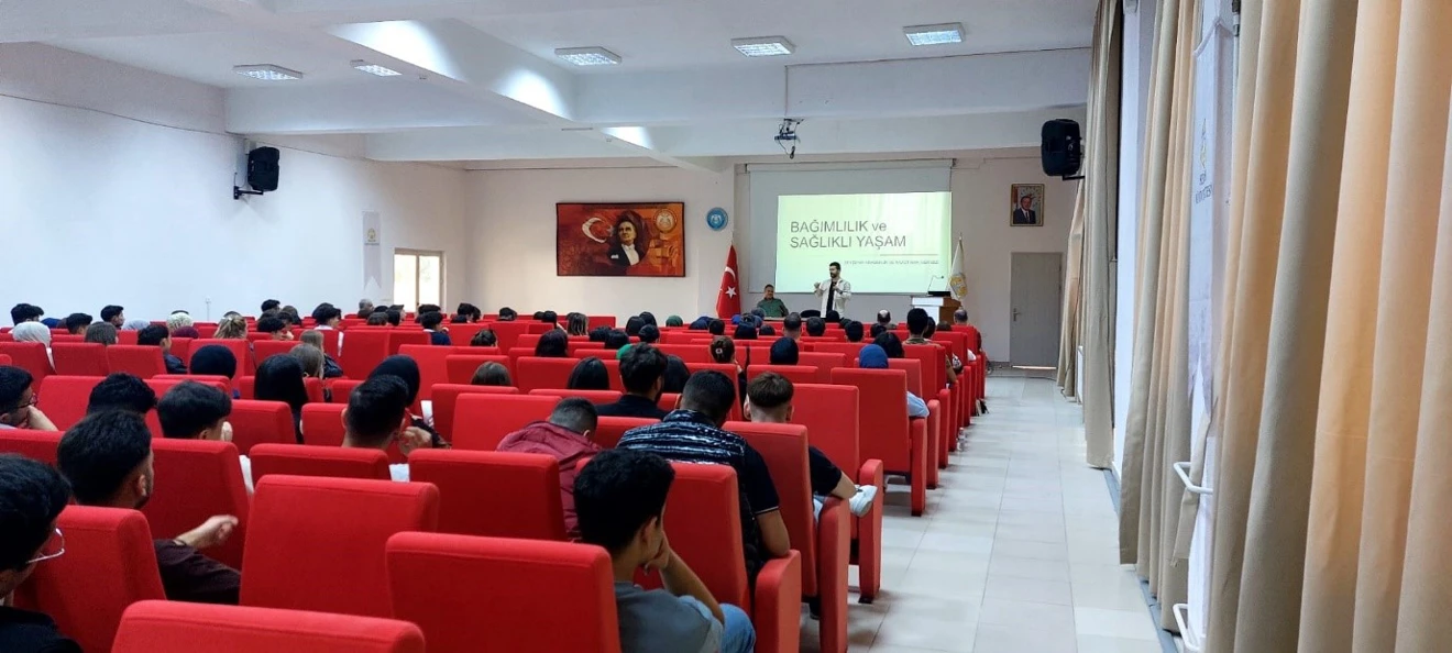 Oryantasyon programının ardından “Bağımlı Olma Özgür Ol” başlıklı panelde Dekan Yardımcısı Doç. Dr. Erhan KILINÇ’ın moderatörlüğünde Beyşehir Rehberlik ve Araştırma Merkezinden Mehmet DEĞİRMENCİ sunumunu gerçekleştirdi. Öğrencilere teknoloji bağımlılığı ve diğer bağımlılık türleri hakkında bilgi veren Değirmenci, üniversitenin ilk yılında adaptasyon sürecinin çok önemli ve hassas olduğunu, bağımlılık yapabilecek her türlü etken maddeden uzak durulması gerektiğini belirtti.