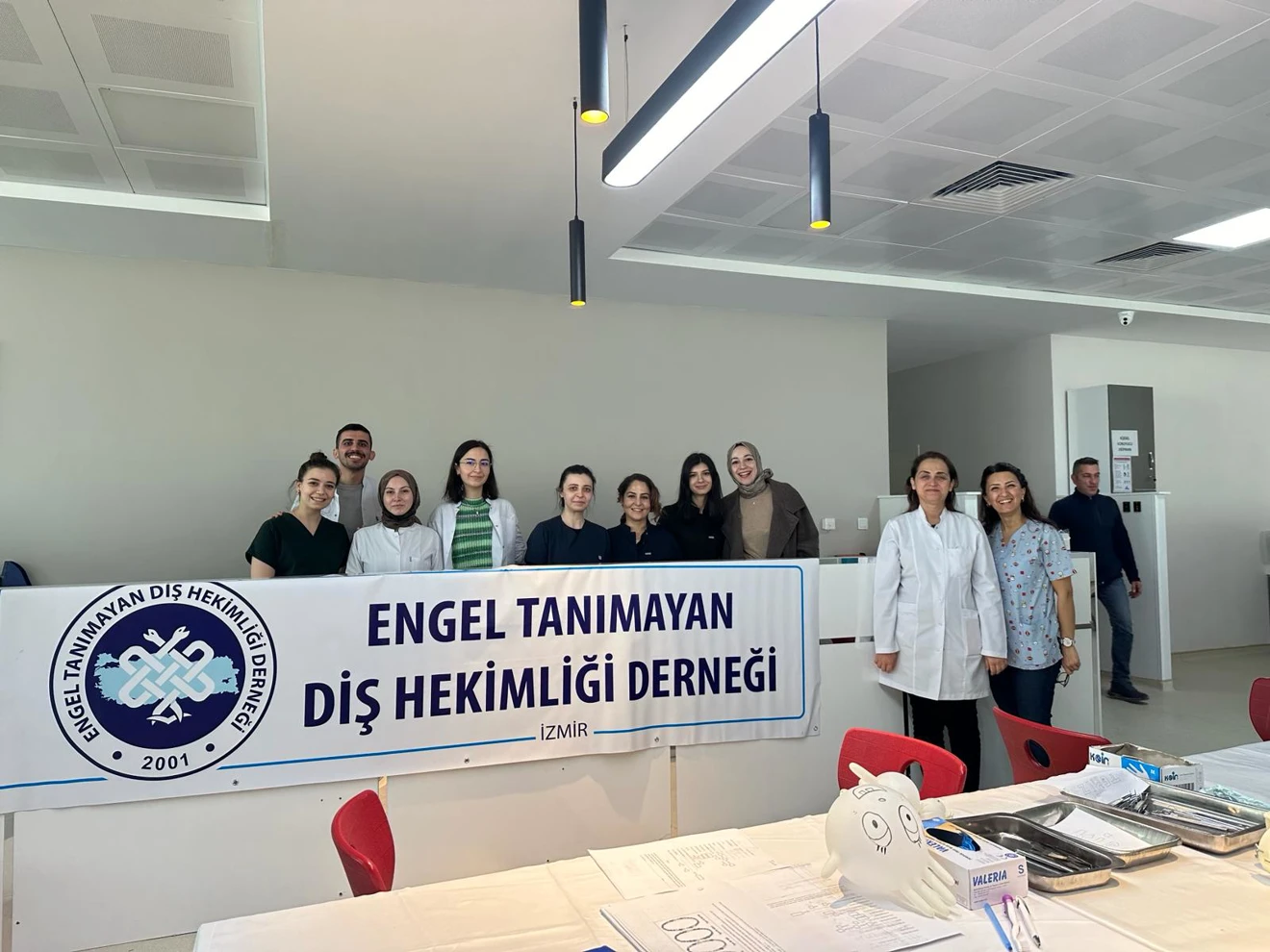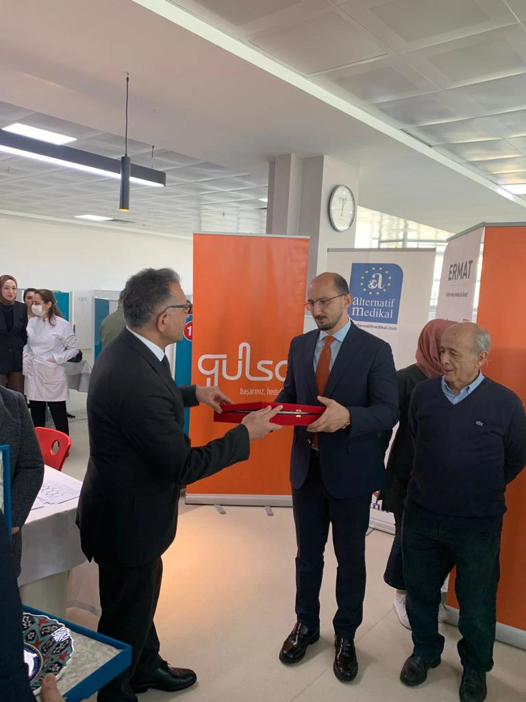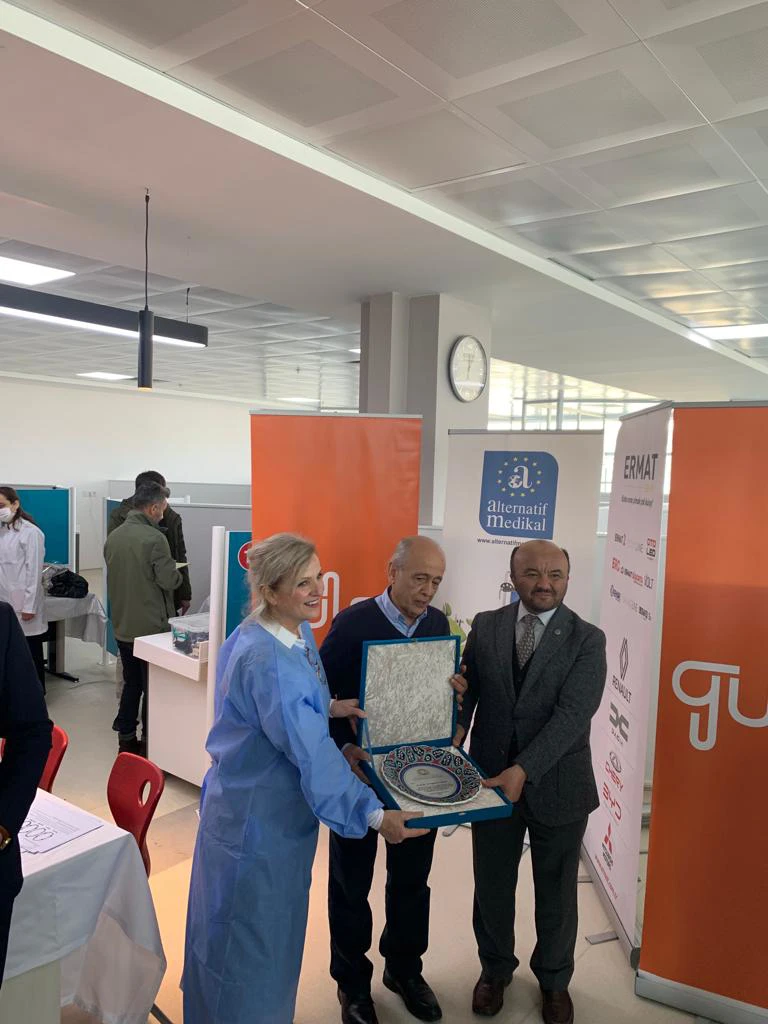 Etkinlikte Engelli Ağız ve Diş Sağlığı Ünitesine katkılarından dolayı Engel Tanımayan Diş Hekimliği Derneği Başkanı ve Ege Üniversitesi Diş Hekimliği Fakültesi emekli öğretim üyesi Prof. Dr. Ertuğrul Sabah ve Sağlık Bakanlığı Sağlık Hizmetleri Genel Müdürlüğü Ağız ve Diş Sağlığı Dairesi Başkanı Doç. Dr. Emre Korkut’a hediye takdim edildi.
