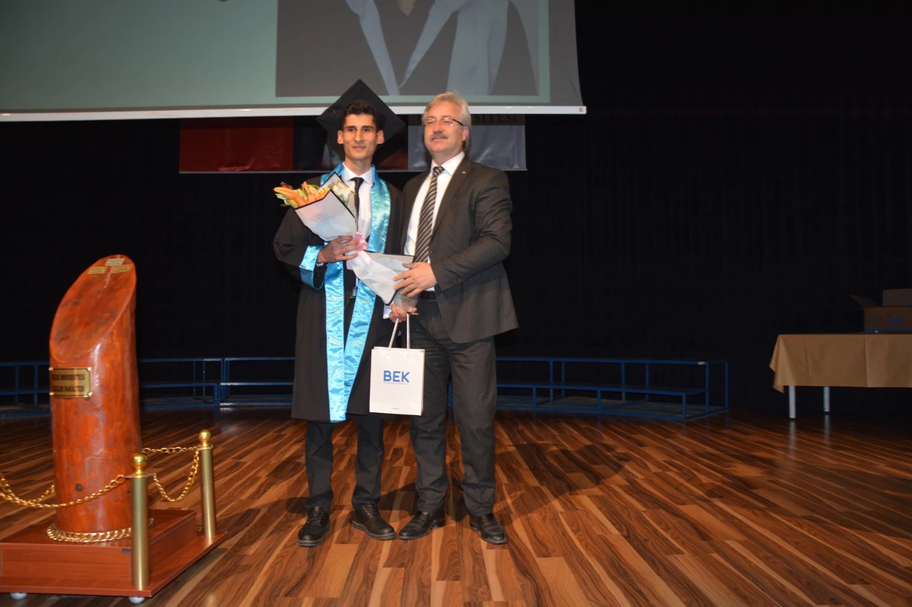 Açılış konuşmaların ardından Fakülteyi dereceyle bitiren öğrencilere plaket takdim edildi.