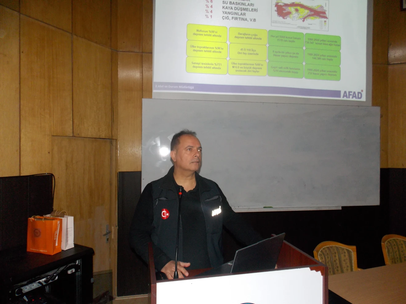 Selçuk Üniversitesi Edebiyat Fakültesi Namık Kemal Amfisi'nde 24 Aralık 2025 tarihinde düzenlenen AFAD Afet Farkındalık Eğitimi, büyük ilgiyle gerçekleştirildi. Selçuk Üniversitesi Akademik Düşünce Topluluğu tarafından organize edilen etkinlikte, AFAD Konya Şube Müdürü Fethi Çoruk ve Zekeriya Vural, katılımcılara afetlere karşı bilinçli ve hazırlıklı olmanın önemini vurguladı.