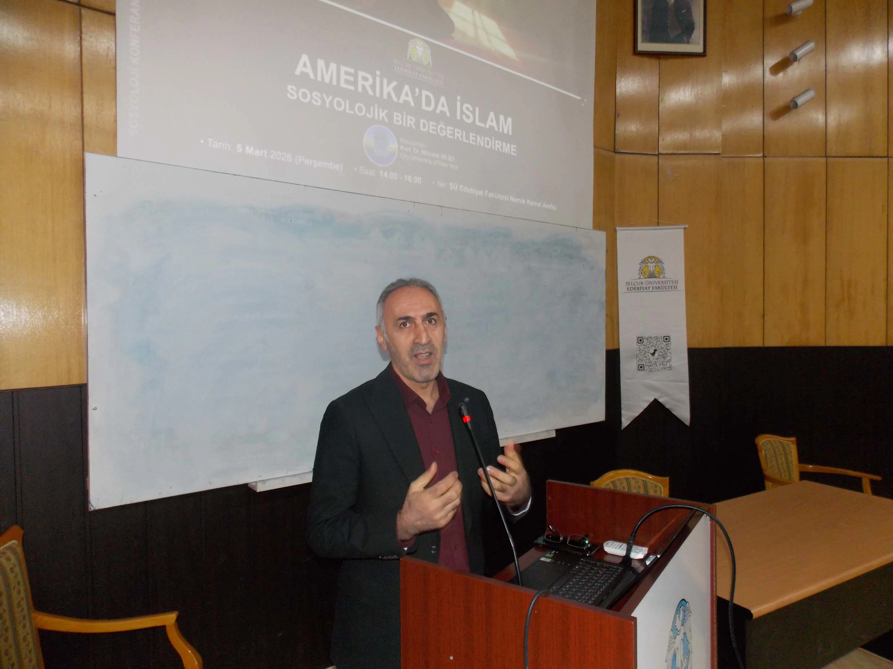 Selçuk Üniversitesi Edebiyat Fakültesi Sosyoloji Bölümü tarafından düzenlenen “Amerika’da İslam: Sosyolojik Bir Değerlendirme” başlıklı konferans, akademisyenler ve öğrencilerin yoğun katılımıyla gerçekleştirildi.