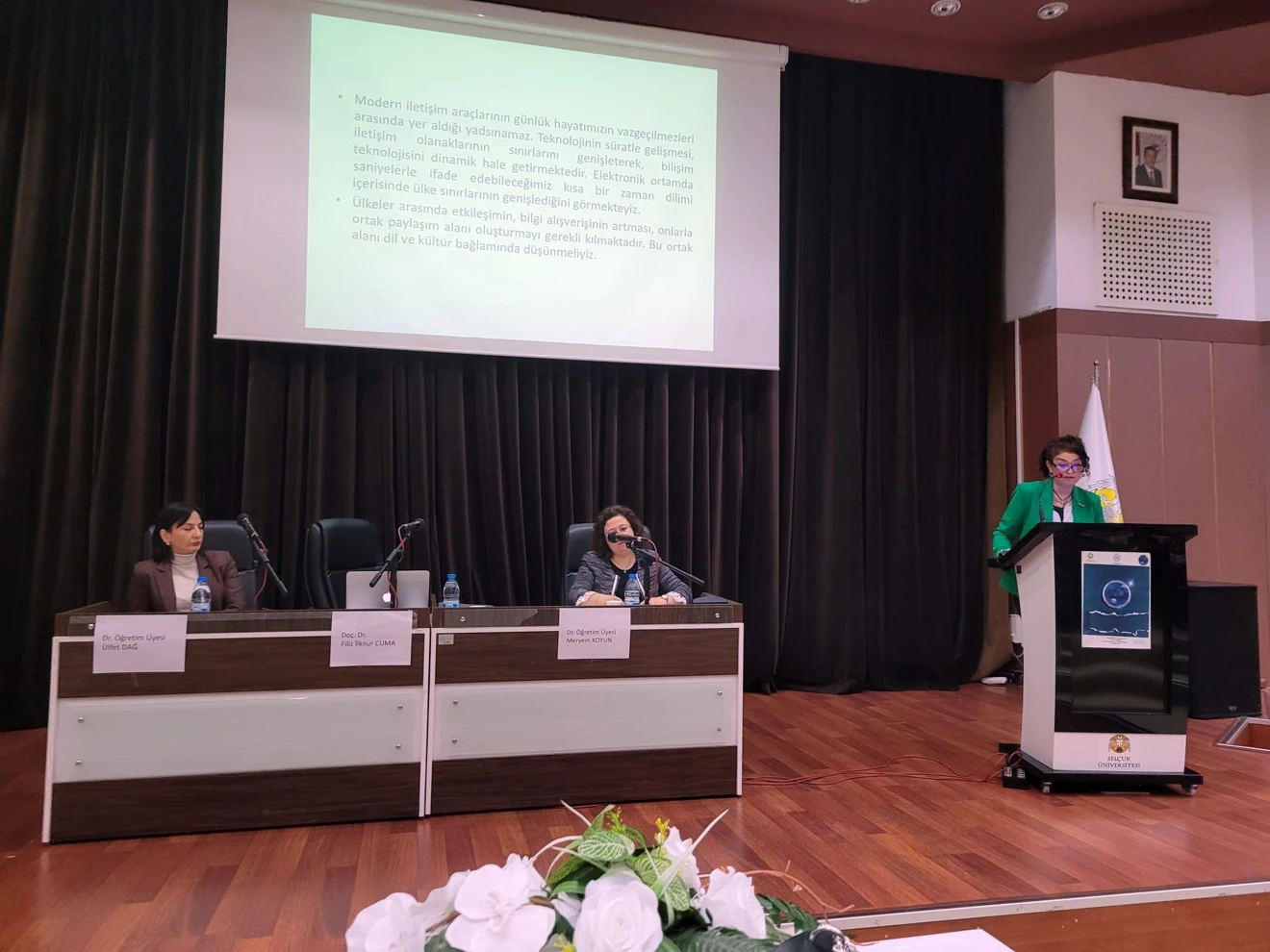 S.Ü.Edebiyat Fakültesi Karşılaştırmalı Edebiyat Bölümü Doç.Dr.Filiz İlknur Cuma, Dr.Öğr.Üyesi Ülfet dağ ve Dr.Öğr.Üyesi Meryem Koyun'un konuşmacı olarak düzenledikleri Kadın İmajının Edebi Eserlerdeki Yansıması konulu konerans değerli hocalarımız ve kıymetli öğrencilerimizin katılımları ile gerçekleşti.