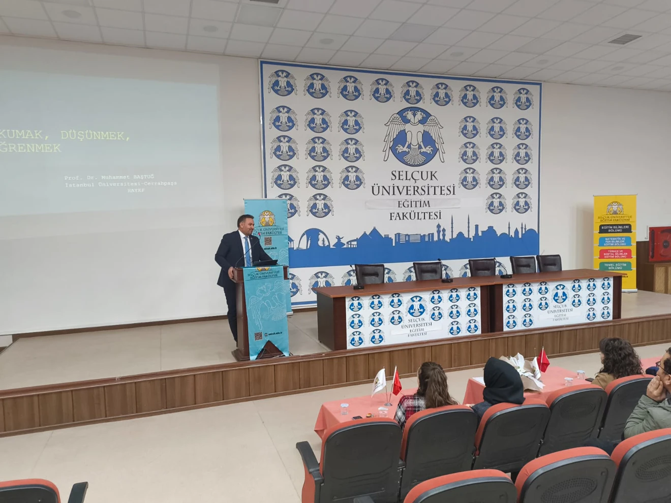 İstanbul Üniversitesi-Cerrahpaşa Hasan Âli Yücel Eğitim Fakültesi Dekanı Prof. Dr. Muhammet Baştuğ, fakültemiz tarafından düzenlenen özel bir etkinlikle öğrencilerimiz ve öğretim üyelerimizle bir araya geldi. İlahiyat Fakültesi Konferans Salonu'nda gerçekleştirilen söyleşide, eğitimin ve kişisel gelişimin temel dinamikleri olan "Okumak, Düşünmek, Öğrenmek" konularına değinildi.