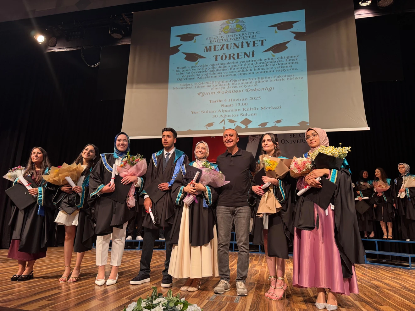 Fakültemiz, 2024-2025 eğitim öğretim yılı mezunlarını coşkulu bir törenle uğurladı! Rehberlik ve Psikolojik Danışmanlık, Sınıf Öğretmenliği, İlköğretim Matematik Öğretmenliği ve Türkçe Öğretmenliği lisans programlarından mezun olan öğrencilerimiz, bu özel günde aileleri, akademisyenler ve arkadaşlarıyla bir araya geldi.