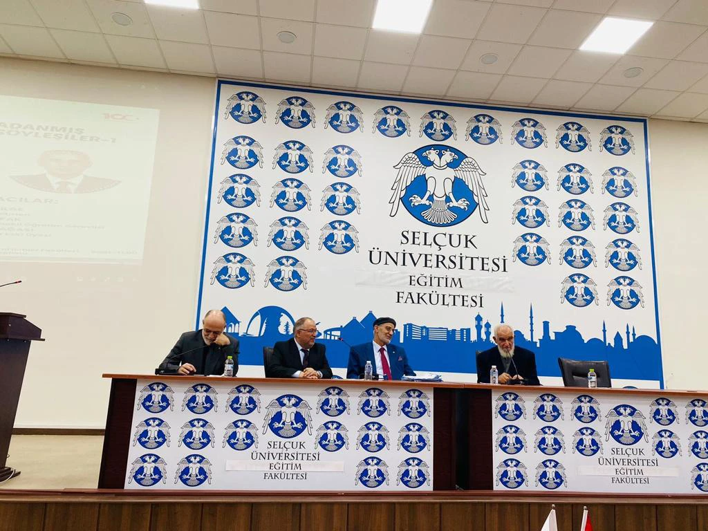 Cumhuriyetimizin yüzüncü yılında öğretmenler günü münasebeti ile Selçuk Üniversitesi Eğitim Fakültemiz bünyesinde Eğitime Adanmış Ömürlerle Söyleşiler paneli icra edildi. Panele dekanımız Sayın Prof. Dr. Kamil ARI başkanlık yaparken, sayın Cengiz Bilge, sayın Engin Şafak ve sayın İlhan Hanağası panelist olarak katıldılar.