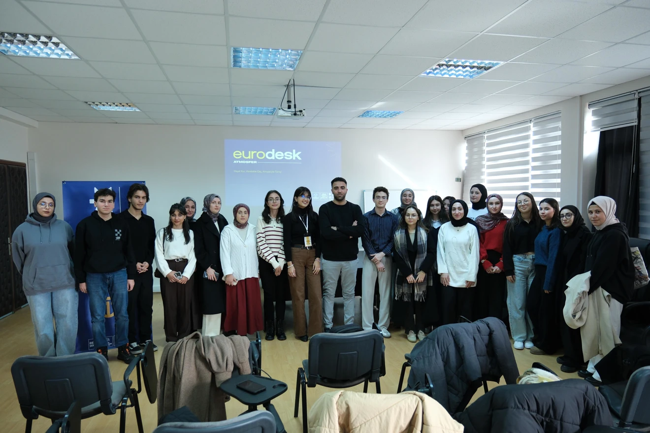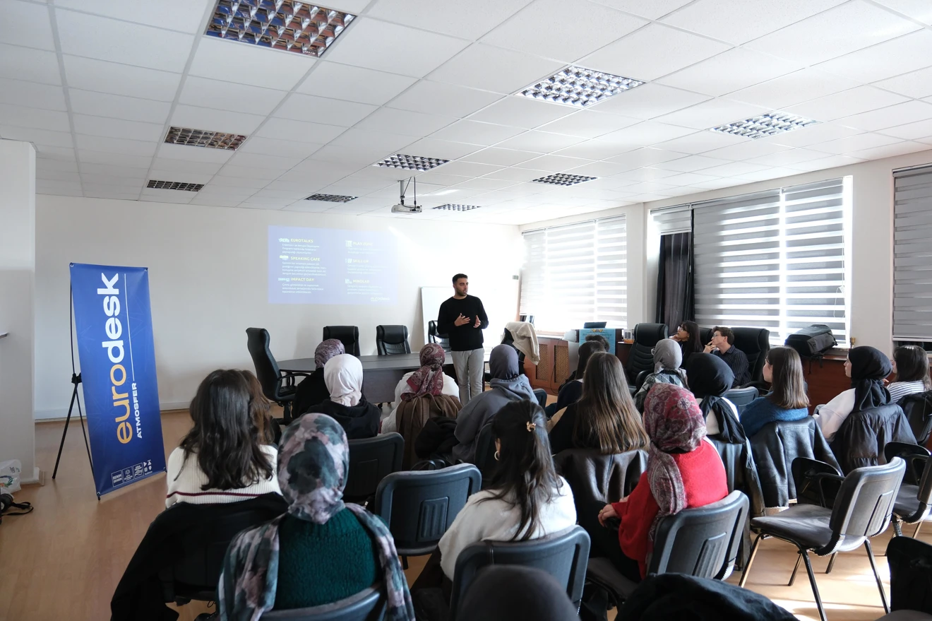 Eğitim Fakültemizde, öğrencilerimizin Avrupa Birliği projeleri ve yurt dışı fırsatları hakkında bilgi edinmelerini amaçlayan bir Eurodesk bilgilendirme toplantısı gerçekleştirildi. Toplantıda Avrupa Birliği projeleri, başvuru süreçleri ve Eurodesk’in sunduğu uluslararası fırsatlar hakkında kapsamlı bilgiler paylaşıldı. Eurodesk Atmosfer Koordinatörü Murat Can Bulşan’ın konuşmacı olarak katıldığı etkinlikte öğrencilerimizin soruları yanıtlandı. Toplantı, Eurodesk Atmosfer Gönüllüsü olan ve aynı zamanda Genç Eğitimciler Topluluğumuzun da başkanı Asiyenur Torun’un girişimiyle öğrencilerimizden gelen talep doğrultusunda organize edilirken, Fakültemiz Dekanı Prof. Dr. Ahmet Naci Çoklar ve Dekan Yardımcımız Prof. Dr. Yusuf Demir de etkinliğe katılarak sürece destek verdi. Etkinliğin gerçekleştirilmesine katkı sunan tüm paydaşlarımıza ve katılan öğrencilerimize teşekkür ederiz.