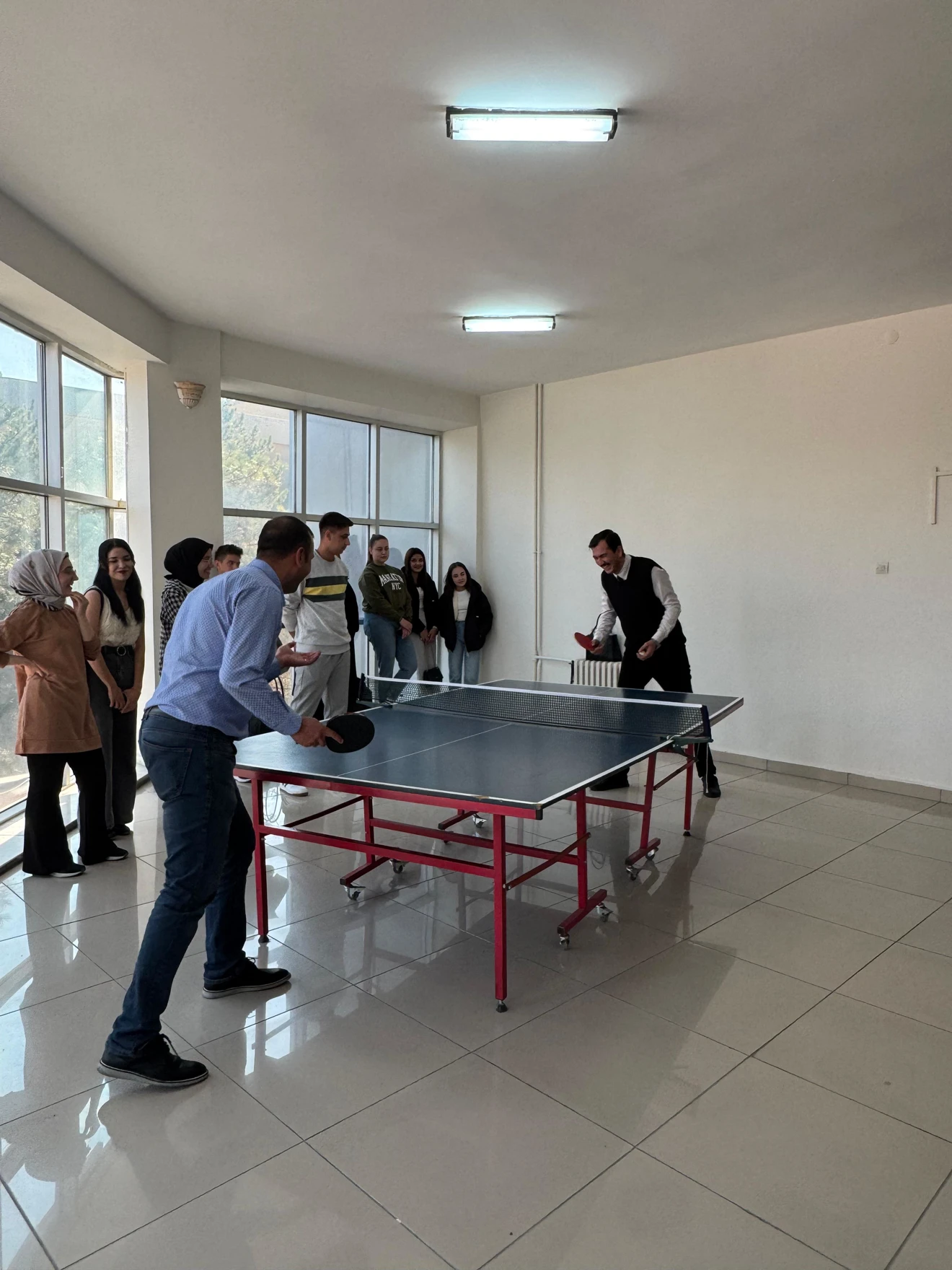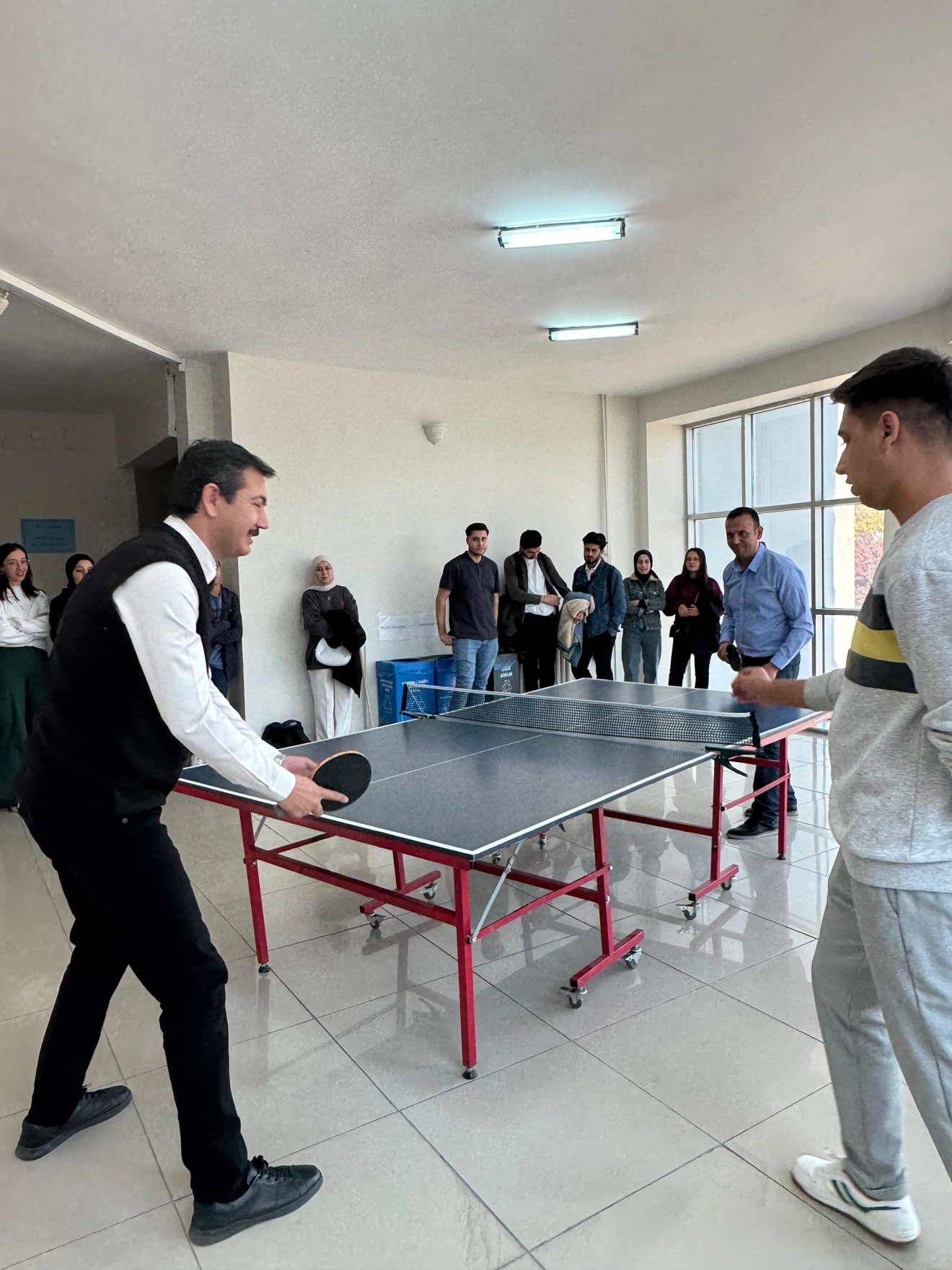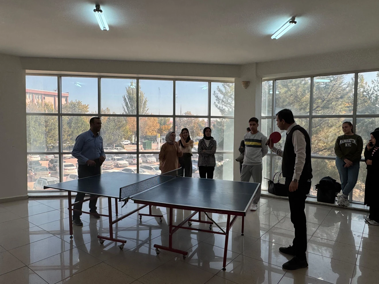 Fakültemiz Genç Eğitimciler Topluluğu organizasyonunda 24 Kasım Öğretmenler Günü'ne özel düzenlenen masa tenisi turnuvası renkli görüntülere sahne oldu. Dekanımız Prof.Dr.Ahmet Naci ÇOKLAR, Dekan Yardımcılarımız Doç.Dr.Sema Aydın CERAN ve Doç.Dr.Yusuf DEMİR, öğretim elemanlarımızın ve öğrencilerimiz turnuvaya ilgi gösterdi. Eğitim Fakültesi olarak sosyal, kültürel ve sportif faaliyetlere destek vermeye devam edeceğiz.