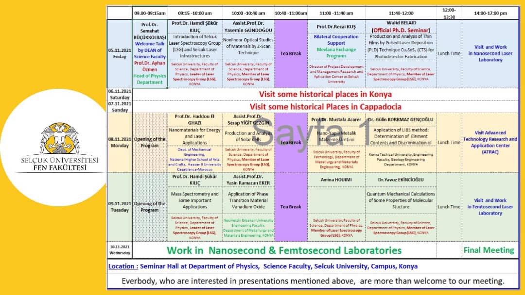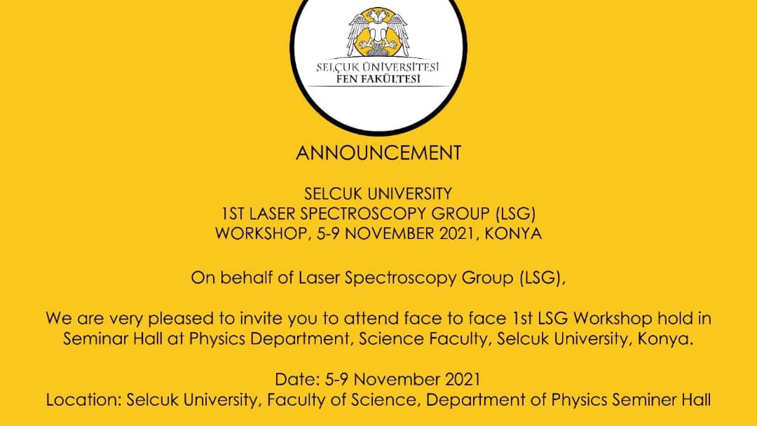 Fakültemiz Fizik bölümü ev sahipliğinde Prof. Dr. Hamdi Şükür KILIÇ tarafından 1. Lazer Spektroskopi Grup Çalıştayı düzenlenecektir.