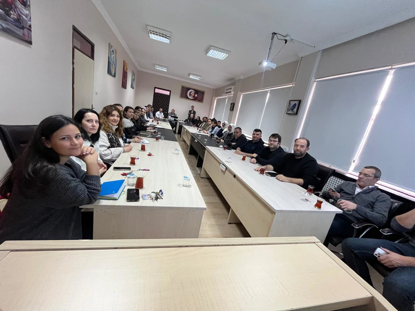 Toplantıya Fakülte Dekanımız Prof.Dr. Mustafa ŞAHİN, Dekan Yardımcıları, Bölüm Başkanları ve Bölüm Başkan Yardımcılarının yanı sıra bölüm öğretim üyeleri de iştirak etti. Toplantıda fakültemiz bünyesinde yürütülen ve planlanan projeler ele alınarak proje koordinasyonu ve süreç yönetimine ilişkin değerlendirmelerde bulunuldu.