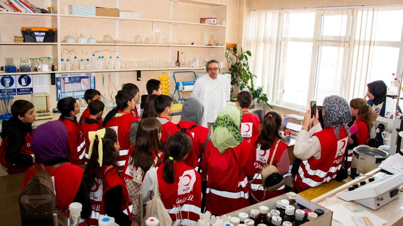 Sızma Alparslan İlkokulu 4’üncü sınıfta eğitim gören 25 öğrenci, öğretmenleri ve Selçuk Üniversitesi Genç Kızılay Topluluğu üyeleriyle birlikte ilk olarak Fen Fakültesini gezdi. Prof. Dr. Serdar Karakurt, Prof. Dr. Ziya Erdem Koç, Prof. Dr. Ahmed Nuri Kurşunlu, Arş. Gör. Dr. Ayşen Işık, Arş. Gör. Feyza Kart ve Arş. Gör. Hatice Esra Akgül, Kanser Araştırma Laboratuvarı, Biyokimya Öğrenci Laboratuvarı, Biyoteknoloji Bölümü Stres Fizyolojisi Laboratuvarı, İklimlendirme Odası, Organik Kimya Öğrenci Laboratuvarı, Anorganik Kimya Araştırma Laboratuvarında yapılan deneyleri uygulamalı olarak anlattı, yürütülen çalışmalar hakkında bilgi verdi.