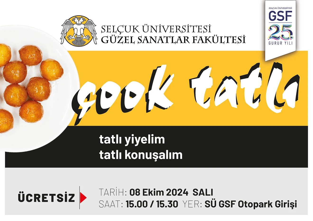 2024-2025 Eğitim Öğretim Yılı Öğrenci Tanışma Toplantısının ardından saat 15.00’da fakültemiz otoparkında “tatlı yiyelim tatlı konuşalım” söylemi ile ücretsiz lokma ikramı etkinliği gerçekleştirilmiştir.