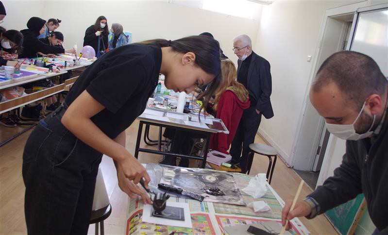 17 Mayıs 2022 günü saat 10.30-11.30 saatleri arasında ise Fakültemiz Yardımcı Öğretim Elemanı Araştırma Görevlisi Ömer Oytun Onur tarafından “Baskı resim sanatında teknikler ve uygulamaları” konulu sunum yapılmış daha sonra Fakültemiz öğretim üyesi Doçent İbrahim Çoban tarafından 11.40- 12.30 ve 13.00-15.30 saatleri arasında baskı tekniklerinden yüksek baskı (linol), çukur baskı (metal gravür), mono tipi ve ipek baskı (serigrafi) uygulama çalışmaları öğrencilere uygulamalı olarak gösterilmiş ve öğrencilerin uygulama yapmaları sağlanmıştır. Etkinliğe Çorum Atatürk Anadolu Lisesi Okul Müdürü Halit Güneş, Müdür Yardımcısı Ayşin Tonga, Etkinlik Küratörü Dursun Şen, Vali Yardımcısı Murat Çağrı Erdinç, İl Milli Eğitim Müdür Yardımcıları Fatih Topan ve Tahir Demir, Şube Müdürleri, Belediye Başkan Yardımcısı Lemzi Çöplü, İl Bilim Sanayi ve Teknoloji Müdürü Murat Ocak, Çorum İl Milli Eğitim Arge Merkezi çalışanları ile öğrenci velileri de katılım sağlamış olup, ilgililerin beğeni ve takdirleri alınmıştır.