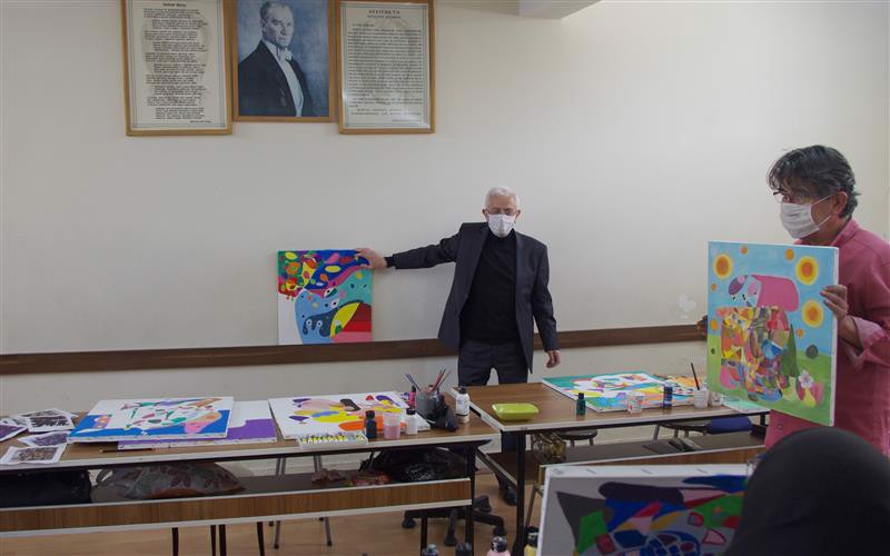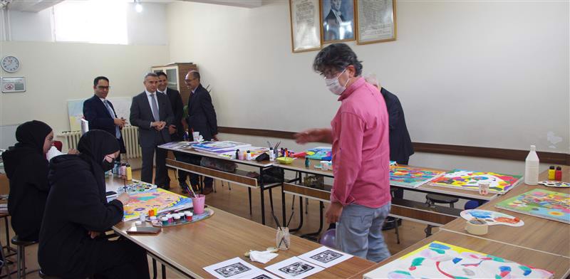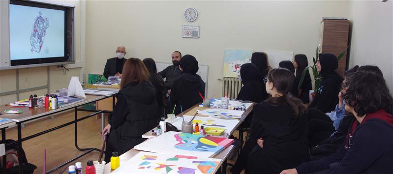 Çorum Atatürk Anadolu Lisesi öğrenci ve öğretmenlerinden oluşan kalabalık bir grubunun katılımı ile 16 Mayıs 2022 tarihinde 11.30-12.30 saatleri arasında gerçekleştirilen programda Fakültemiz öğretim üyesi Doçent İbrahim Çoban tarafından “Resim Sanatında Özgünlük ve Resim Sanatının Toplum İçindeki Yeri” ve “Toplumların Yaşayışında Sanat“ konulu söyleşiler yapılmış aynı gün 13.00-16.00 saatleri arasında ise Sanatlar Dersi Uygulama Atölyesi’nde “Anlık hislerin kontrolsüz tuvallere yansıması etkinliği” gerçekleştirilmiştir. Söz konusu program öğrencilerle birlikte öğretmenler tarafından büyük ilgi görmüştür. Her bireyin kendine özgü resim yapabileceği anlayışı ile gerçekleştirilen sanatsal uygulama etkinlikleri sürecinde arka planda çalan müzik eşliğinde katılımcılardan dört dakikalık bir zaman diliminde herhangi bir düşüncenin tesirinde kalmadan tuval üzerine kursun kalemlerle çizimler yapmaları istenmiş sonraki aşamada katılımcılar bilinç denetimi olmaksızın ortaya çıkan görünümlere kendi tasarım, kompozisyon ve renk armonilerini eklemleyerek çalışmalarını tamamlamışlardır.