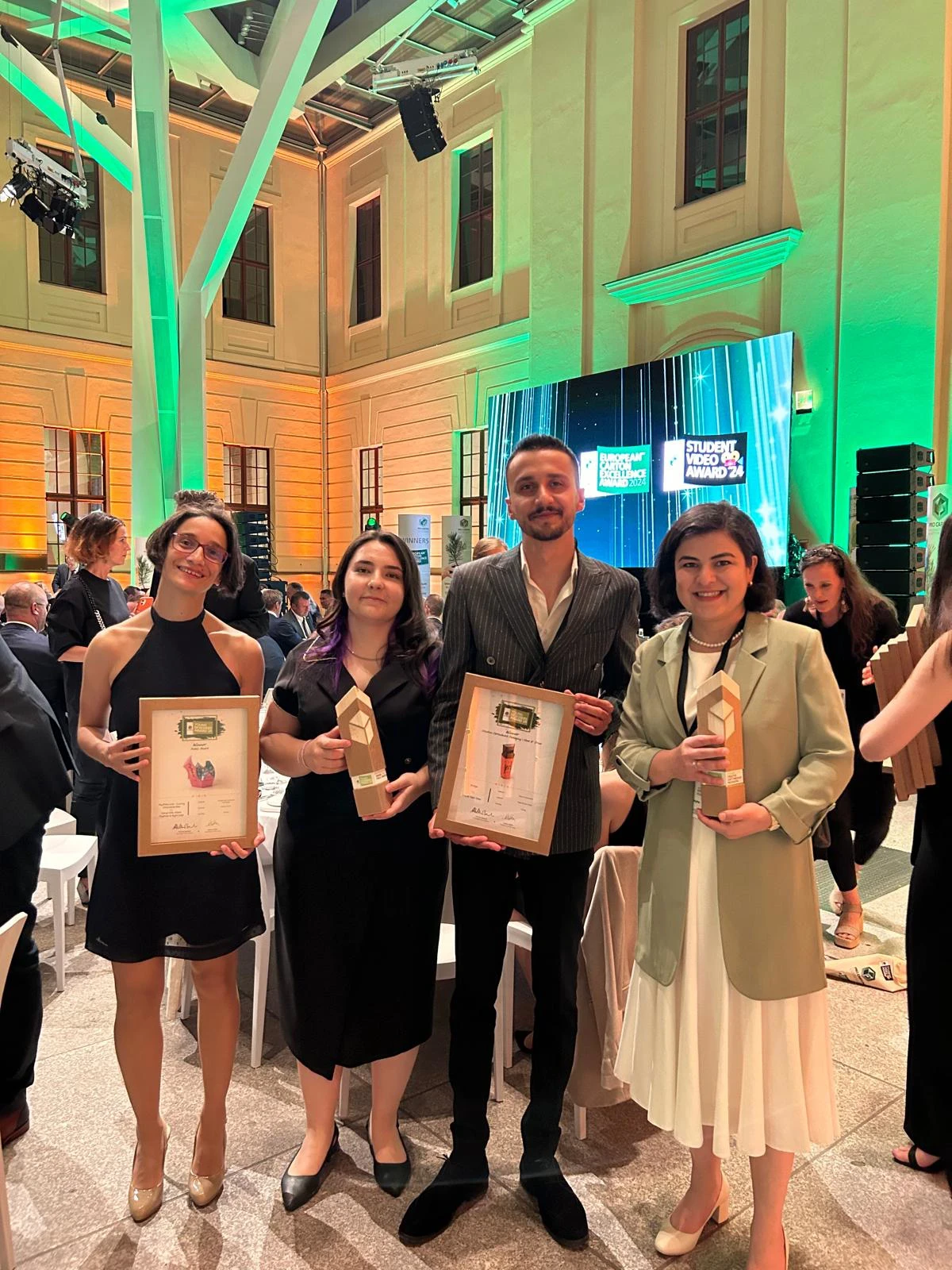 Pro Carton Young Designers Award yarışmasının ödül töreni Berlin’de yapıldı. Selçuk Üniversitesi Güzel Sanatlar Fakültesi Endüstriyel Tasarım Bölümü Öğrencisi Murat Yasir Dilek “Bridge” isimli ambalaj tasarımıyla Yiyecek & İçecek kategorisinde birinciliği kazandı. Dilek, ödülünü proje danışmanı Dr. Öğr. Üyesi Seda Duman Köylü ile birlikte aldı.