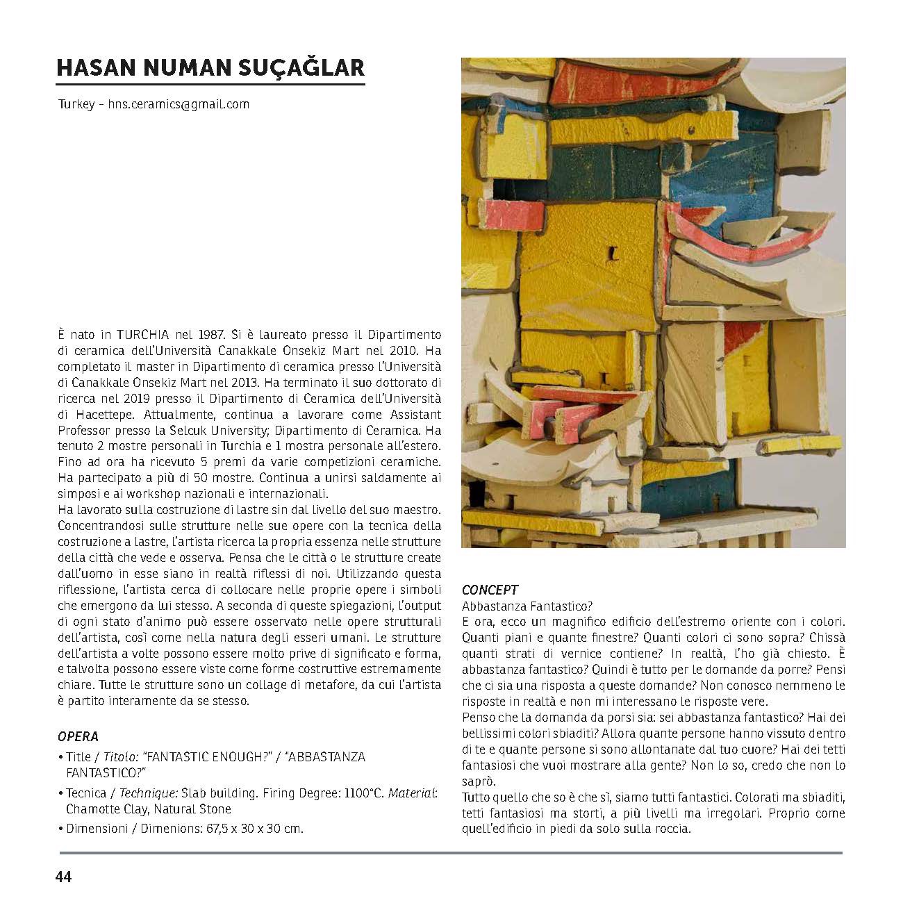 Fakültemiz Seramik Bölümü Öğretim Üyesi Dr. Öğr. Üyesi Hasan Numan SUÇAĞLAR, İtalya/Castellamonte'de 20.08.2022 tarihinde düzenlenen "Ceramics in Love..... Castellamonte Şehri Ödülü 2022" yarışmasında "Fantastic Enough?" isimli eseri ile Birincilik Ödülü kazanmıştır. Öğretim Üyemizi tebrik ederiz.