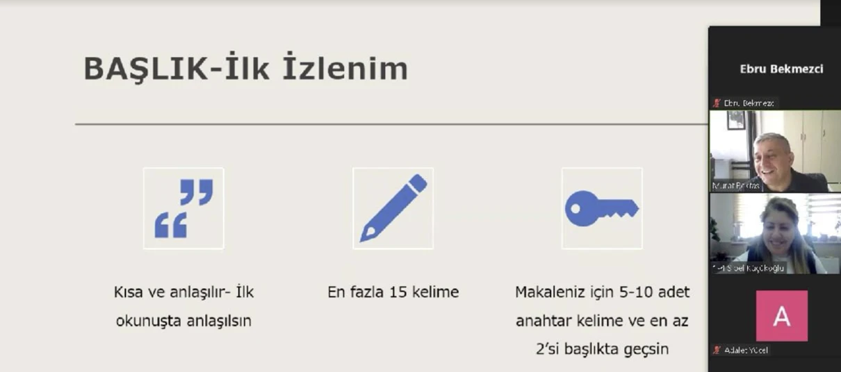 Hemşirelik Fakültesi Bölüm Başkanlığı tarafından düzenlenen Asistan Eğitimi kapsamında Prof. Dr. Murat Bektaş tarafından 07 Şubat 2024 tarihinde Uluslararası Dergilerde Yayın Yapma ve Yayınlatma Süreci konulu eğitim Prof. Dr. Sibel Küçükoğlu’nun moderatörlüğünde online olarak düzenlenmiştir.