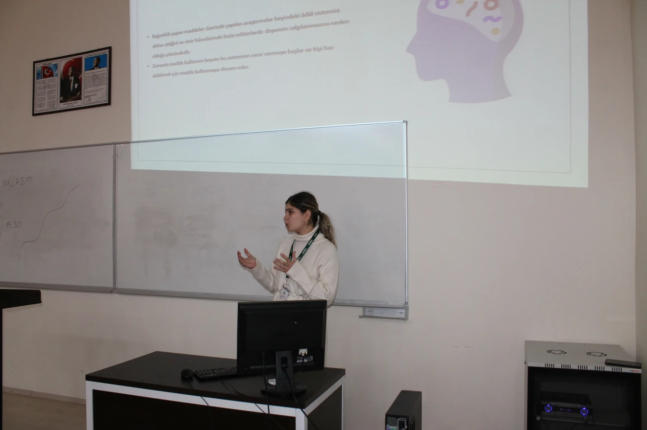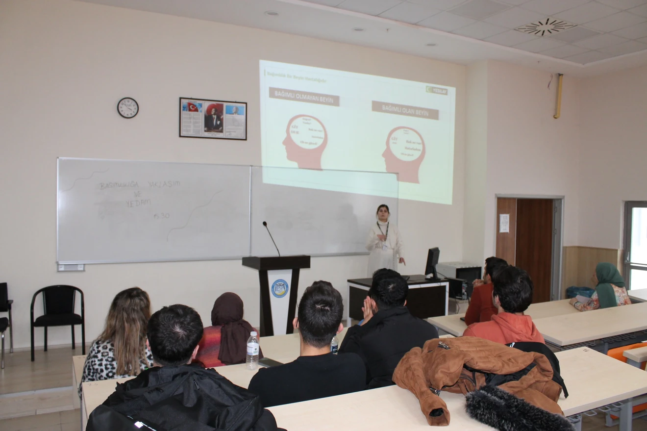 Fakültemiz ve YEDAM'ın organizasyonuyla; "Bağımlılığa Yaklaşım ve YEDAM“ konulu konferans; YEDAM Psikolog Sn. Rümeysa ŞEN ÖZDEMİR'in konuşmacı olarak katılımlarıyla gerçekleştirildi.