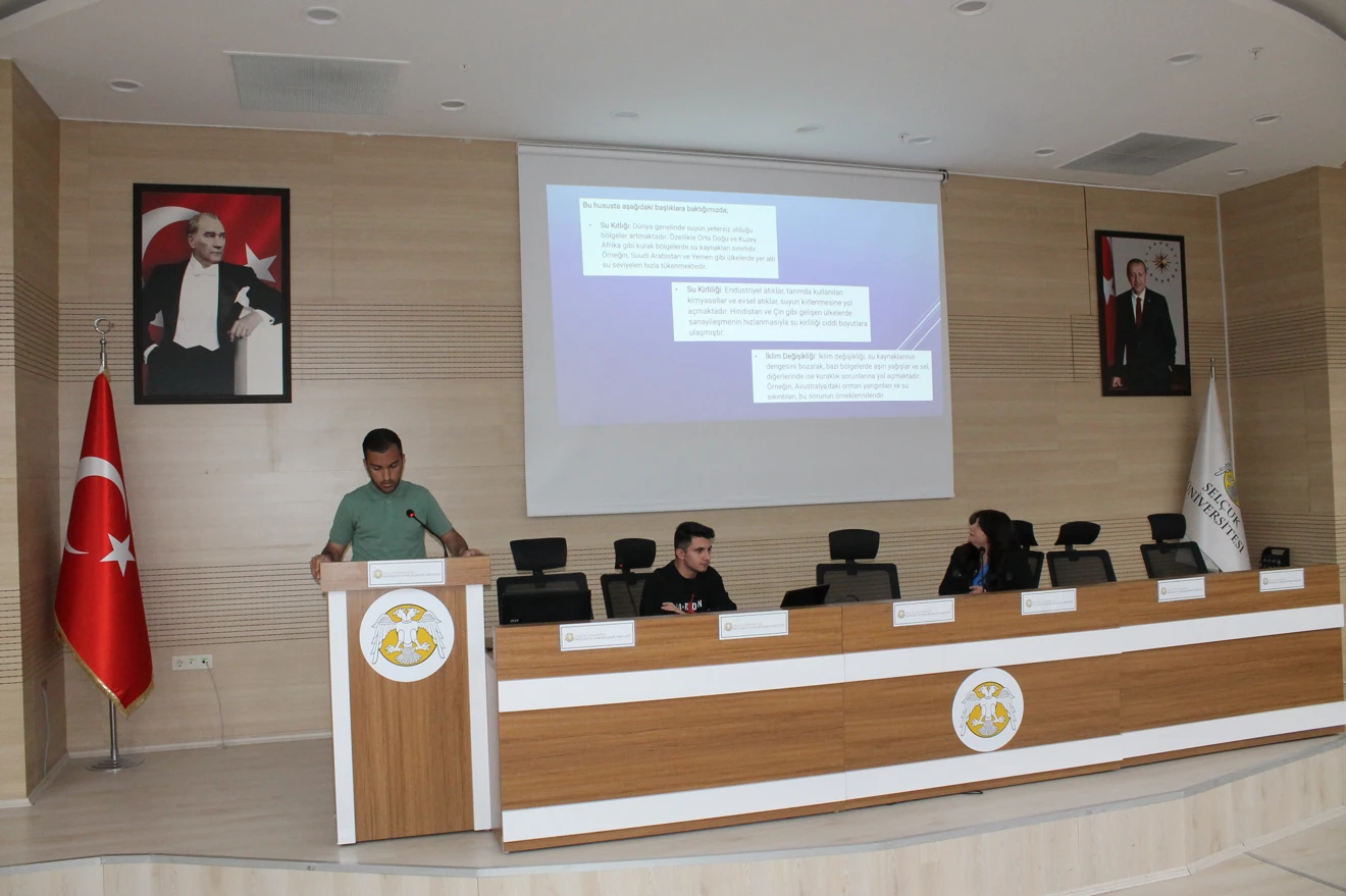 Fakültemiz Siyaset Bilimi ve Kamu Yönetimi Bölüm Başkanlığı organizasyonuyla; "Su Günü Farkındalık Etkinliği“ konulu söyleşi; Fakültemiz Siyaset Bilimi ve Kamu Yönetimi Bölüm Öğretim Üyesi Doç. Dr. Sn. Hayriye SAĞIR'ın moderatörlüğünde, Siyaset Bilimi ve Kamu Yönetimi Bölümü İŞKUR Gençlik Programı Öğrencilerinin konuşmacı olarak katılımlarıyla gerçekleştirildi.