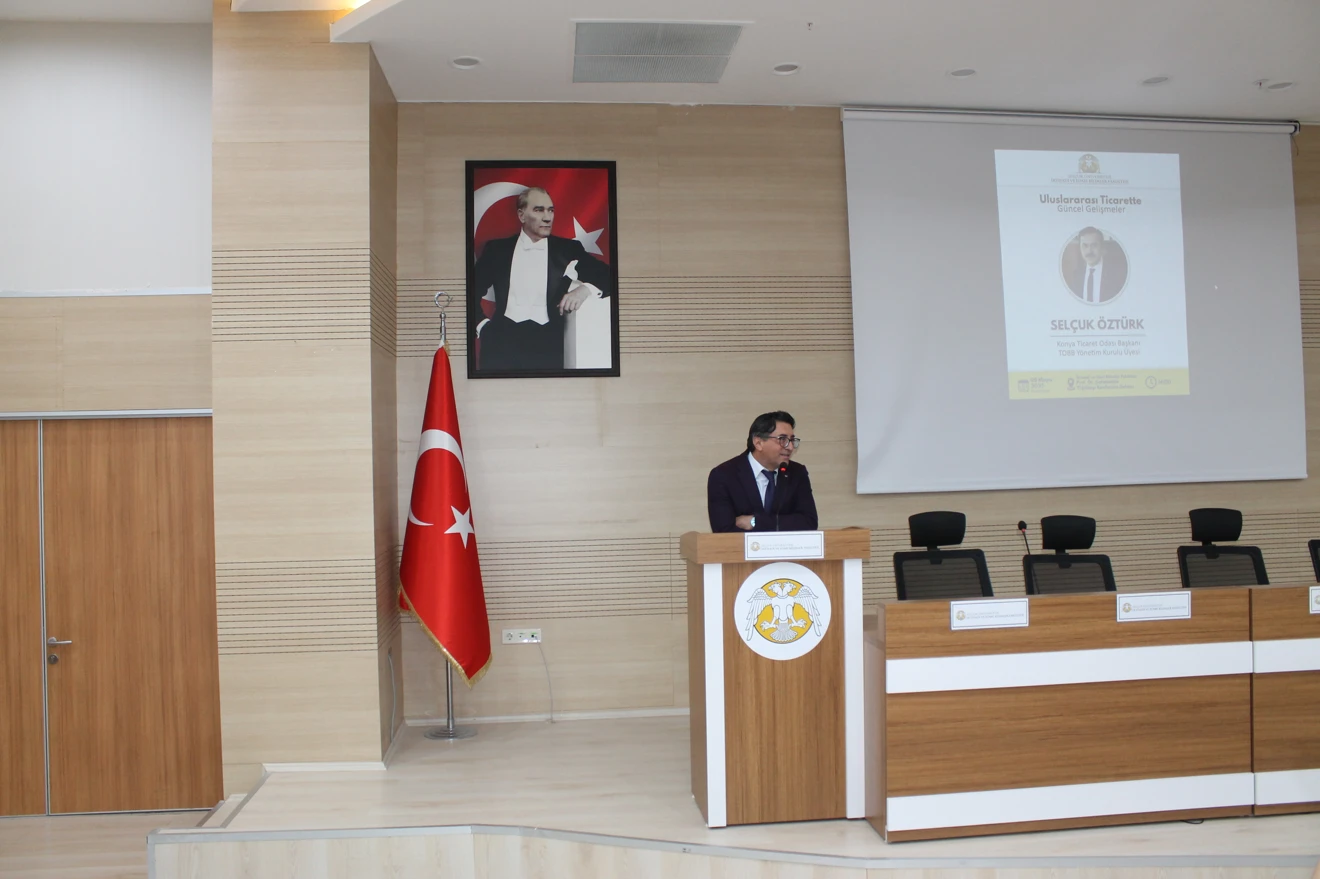 Fakültemiz Uluslararası Ticaret ve Finansman Bölüm Başkanlığı organizasyonuyla; "Uluslararası Ticarette Güncel Gelişmeler“ konulu konferans; Konya Ticaret Odası Başkanı ve TOBB Yönetim Kurulu Üyesi Sn. Selçuk ÖZTÜRK'ün konuşmacı olarak katılımlarıyla gerçekleştirildi.