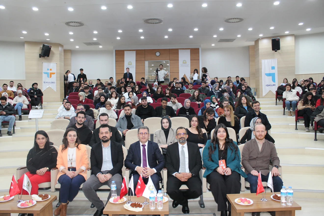 Uluslararası Ticaret ve Finansman Bölüm Başkanlığı ve Finans, Teknoloji ve Kariyer Topluluğu organizasyonuyla; "Finteka Kariyer Zirvesi“ konulu konferans; Çalışma ve Sosyal Güvenlik Bakanlığı Konya Çalışma ve İş Kurumu İl Müdürü Sn. Emrah KELEŞ ve Kapsül Teknoloji Platformu Bistlab Koordinatörü Sn. Ali Osman GÜNAY'ın konuşmacı olarak katılımlarıyla gerçekleştirildi.
