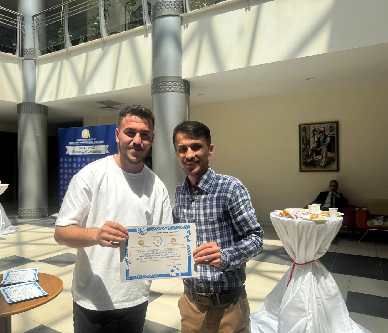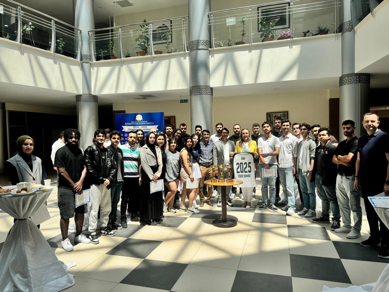 Üniversitemiz 2024-2025 Eğitim-Öğretim Yılı 29. Spor Şenliği kapsamında gerçekleştirilen turnuva sonucunda 3.’lük kupası kazanan Voleybol Erkek Öğrenci, Basketbol Erkek Öğrenci takımımız ile Basketbol Erkek Personel takımımız kupalarını Dekanımız Prof. Dr. Sn. Savaş ERDOĞAN Hocamıza takdim ettiler. Şenliklerdeki başarımızı gerçekleştirdiğimiz kokteyl ile kutladık.