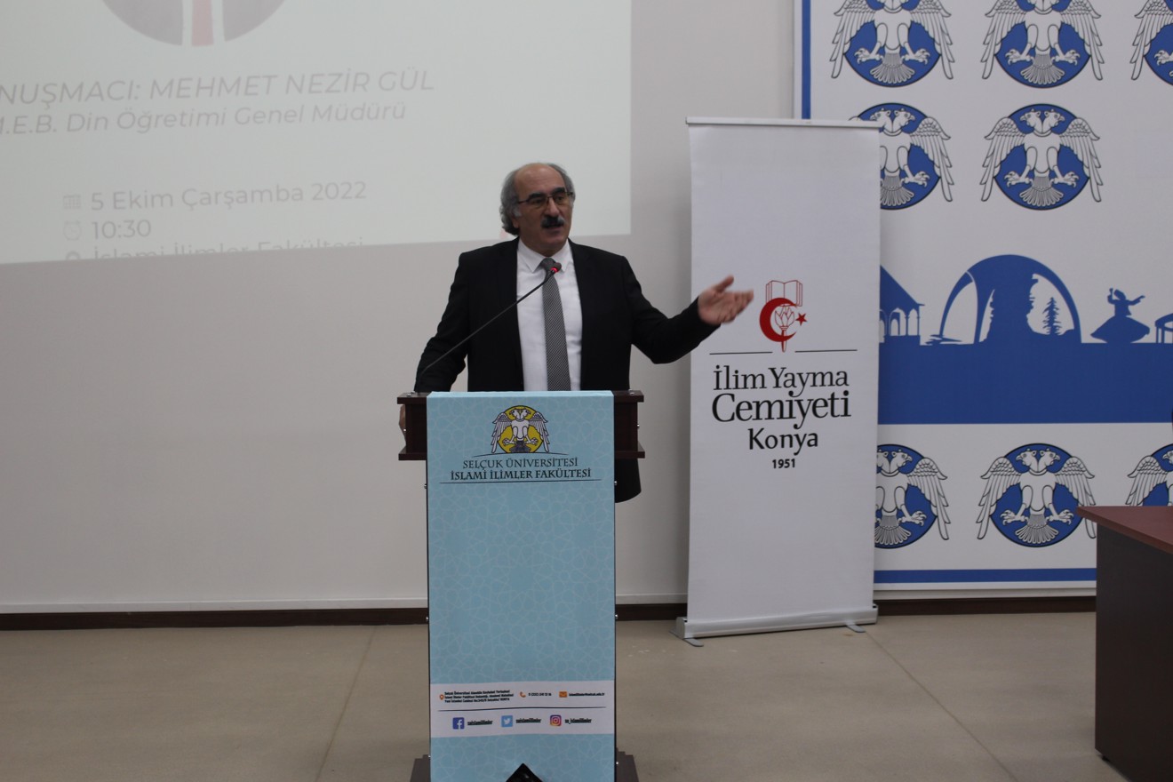 Kariyer konferanslarının bu eğitim-öğretim yılındaki ilk halkasında Milli Eğitim Bakanlığı Din Öğretimi Genel Müdürü Mehmet Nezir Gül hocamız, temsil ettiği kurumun din öğretimi alanındaki istihdam imkanlarını anlattı. İlim Yayma Cemiyeti Konya Şubesi'nin sponsorluğunda 05 Ekim 2022 tarihinde saat: 10:30'da fakültemiz konferans salonunda gerçekleşen konferansa öğrencilerimiz yoğun ilgi gösterdi.