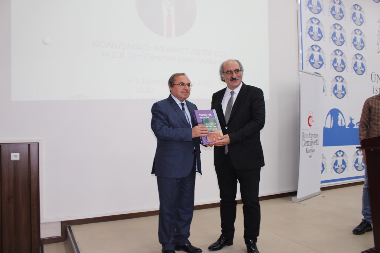Yaptığı selamlama konuşmasında din öğretiminin önemine dikkat çeken fakülte dekanımız Prof. Dr. Ramazan Altıntaş, bu programın öğrencilerimizin istihdam edildiği kurumların başında gelen Milli Eğitim Bakanlığı'nın kendilerinden beklentilerini ve sunduğu imkanları öğrenme fırsatı sağladığını belirtti. Konferans davetini kabul edip gelen Sayın Müdür M.Nezir Gül'e teşekkürlerini arz etti.