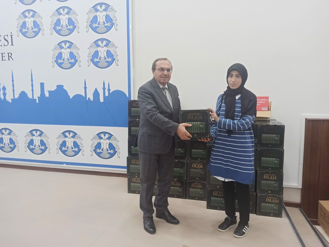 Programda tüm öğrencilere Diyanet İşlei Başkanlığı'nın neşrettiği 7 ciltlik Hadislerle İslam adlı eseri dağıtıldı.