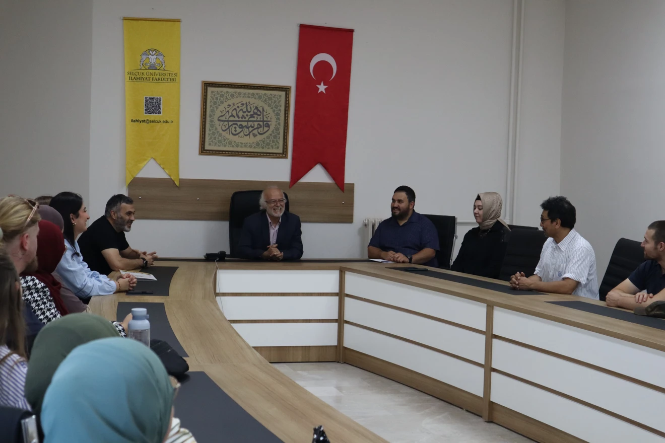Ziyaretçilere Fakültemiz Dekanı Prof. Dr. Yusuf Acar, Dekan Yardımcıları Doç. Dr. Şeyma Boydak ve Doç. Dr. Raşit Akpınar ve Fakültemiz öğretim üyeleri Prof. Dr. Mithat Eser, Doç. Dr. Ömer Faruk Akpınar, Dr. Öğr. Üyesi Süleyman Şahin, Dr. Öğr. Üyesi Furkan Dinleyici, Arş. Gör. Dr. Abdullah Karaca ve öğrencilerimiz eşlik etti. Grup, Dr. Öğr. Üyesi Hüseyin Gökalp’ın rehberliğinde fakültemiz öğretim üyelerinden Prof. Dr. İbrahim Işıtan’ın Tasavvuf Tarihi dersine iştirak etti. Akabinde öğretim üyeleri ve öğrencilerimizle bir araya gelerek tecrübe paylaşımı ve iş birliği üzerine görüşmeler gerçekleştirdi. Ekip, Üniversitesimiz Mevlana Araştırmaları Enstitüsü'nü de ziyaret ettiler ve Enstitü Müdür Prof. Dr. Nuri Şimşekler ile de istişarede bulundular.