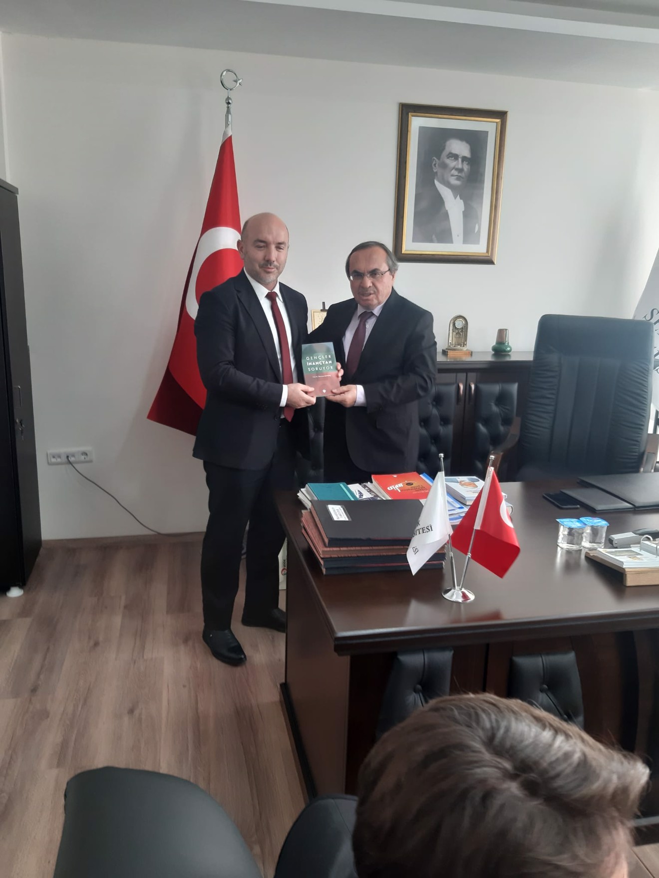 Kosova Priştine Üniversitesi İslami İlimler Fakültesi Dekanı Prof. Dr. İslam Hasani, Kosova İslam Birliği Başimamı Vedat Sahiti, Kosova İslam Birliği Kültür ve Basın Müdürü Ramadan Shkodra, Kosova İslam Birliği Yayın Müdürü Nuhi Simnica, Kosova İslam Birliği Özel Kalemi Besir Neziri, Türkiye Priştine Büyükelçiliği Din Hizmetleri Müşavirliği Sekreteri Zymer Ramadani, fakültemiz dekanı Prof. Dr. Ramazan Altıntaş'ı makamında ziyaret etti. Fakültemiz Kosovalı öğrencilerinden Abide Gerbeshi'nin de bulunduğu ziyarette eğitim hareketliliği konusu başta olmak üzere bazı konularda görüş alışverişinde bulunuldu. Dekanımız Altıntaş, Prof. Hasani'ye kitabından hediye etti.